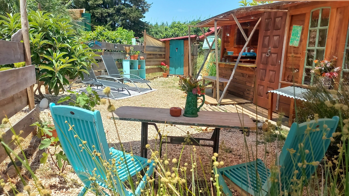 An off-grid spot for summer and winter, situated in the South of the Algarve with a 5 minutes drive to the beaches of Luz and Burgau. The tiny house is situated in rural area, where you can experience peace and tranquility, watch the sunset from your deck while you taste our own vegetables. A variety of beautiful beaches with perfect surf conditions are close by (South- and West Coast) and the spot is almost next to the fisherman's trail. If you are looking for something different, this is it!!