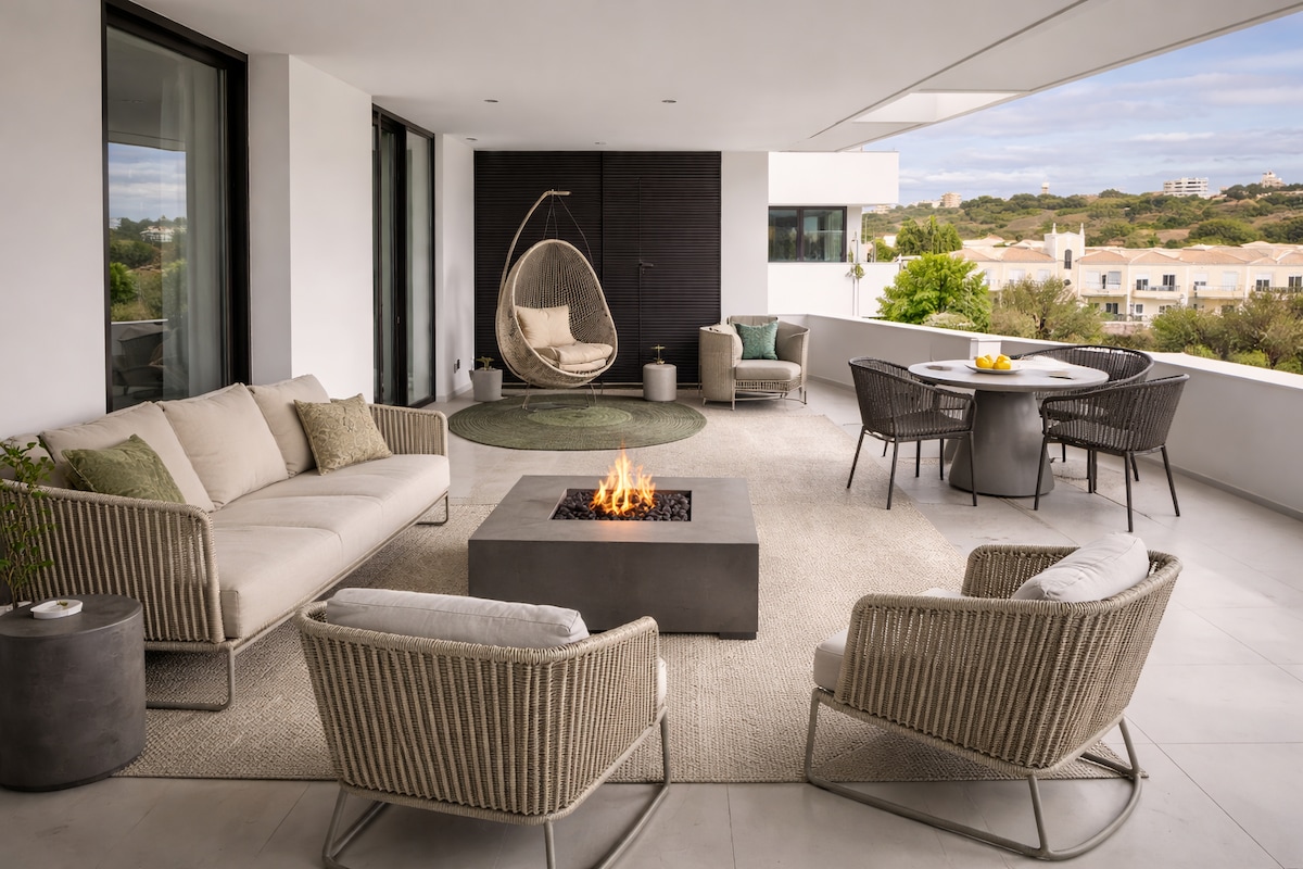 Newly furnished 3-bedroom villa with private pool, BBQ terrace and fireplace in peaceful Montinhos da Luz — 5 min from Praia da Luz beach and 10 min from Lagos old town. Featuring an 85" Samsung Smart TV, modern designer furniture throughout, AC in every room, and high-speed WiFi (100 Mbps). 2 full bathrooms plus a guest WC, fully equipped kitchen with pool views, and a beach kit included. Perfect for families, couples, remote workers and golf groups.