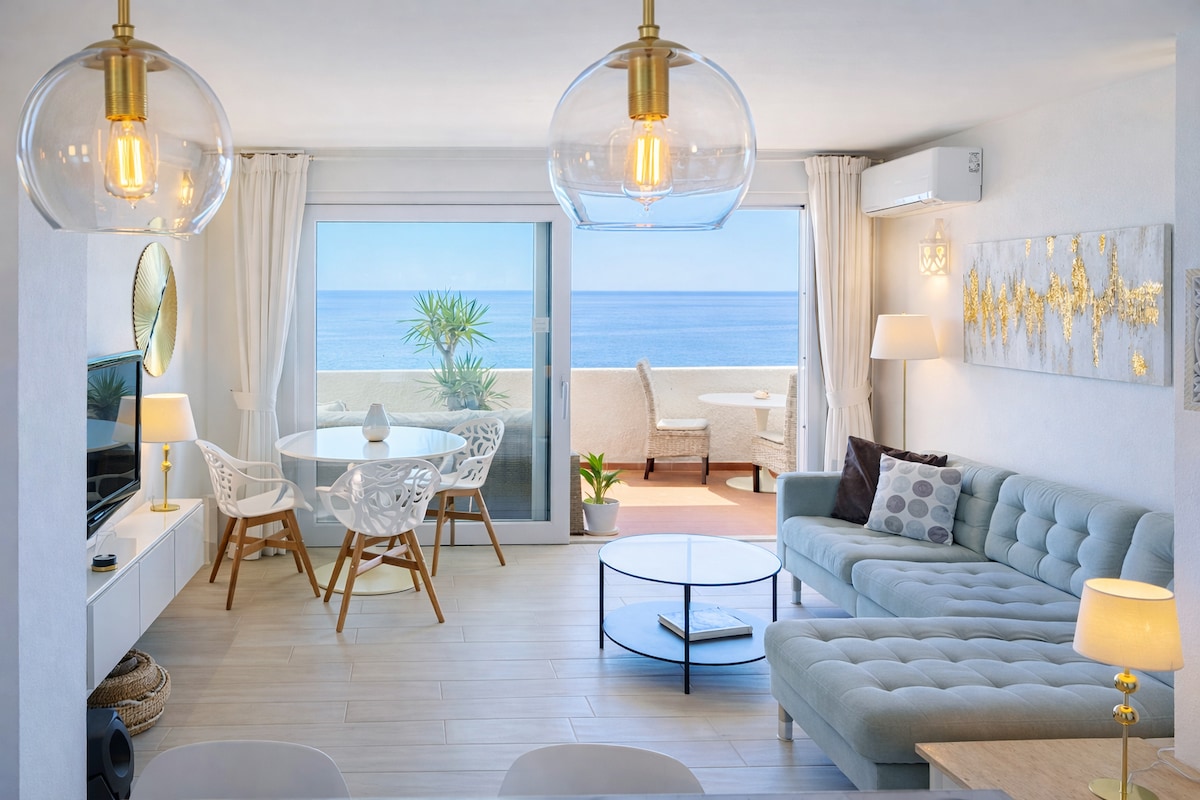 A brand new 2 bedroom apartment located within walking distance of the Portuguese old town of Lagos and its beautiful beaches. The apartment offers a clean, bright and stylish space inside and a large terrace outside where you can soak up the sun on the loungers or enjoy dinner at the table with a view of the ocean.