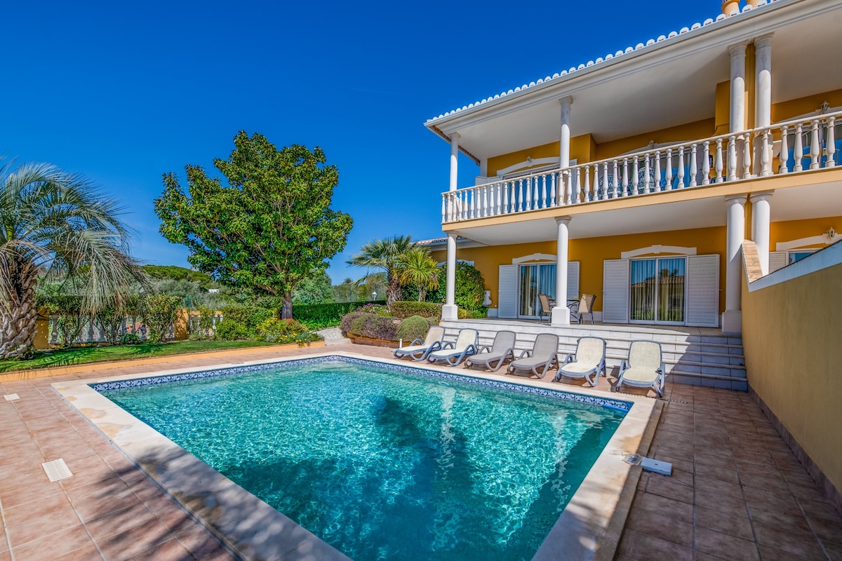 Olá families! The lovely Vivenda Sol Nascente is ideal for you! Swimming Pool & Private Garden, Air Conditioning (AC), Barbecue. In a quiet place, in the middle of the Algarve countryside, next to a Golf Course, with magnificent beach views of Lagos Ocean Bay & a 7-minute walk from the beach/restaurants. -AC (cold/hot, 5 bedrooms & living room) -Private pool (heating: extra cost) -Barbecue -Parking -Safe Box -Wifi -HDTV Welcome to Meia Praia beach paradise & the beautiful city of Lagos!🙂☀️