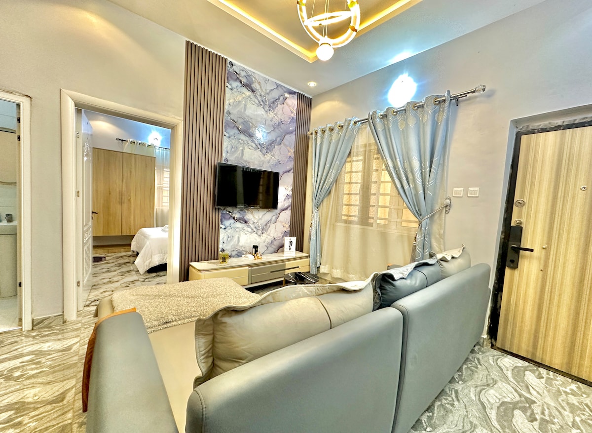 Enjoy premium comfort in this beautifully furnished 2bedroom apartment within a serene gated estate with 24/7 security. Just off the Lekki-Epe Expressway, it’s close to restaurants, nightlife, supermarkets, salons, and gas stations. The space features a luxurious yet functional design, spacious living, a fully equipped kitchen, comfy mattresses, high-speed internet, and a smartlock for added convenience.