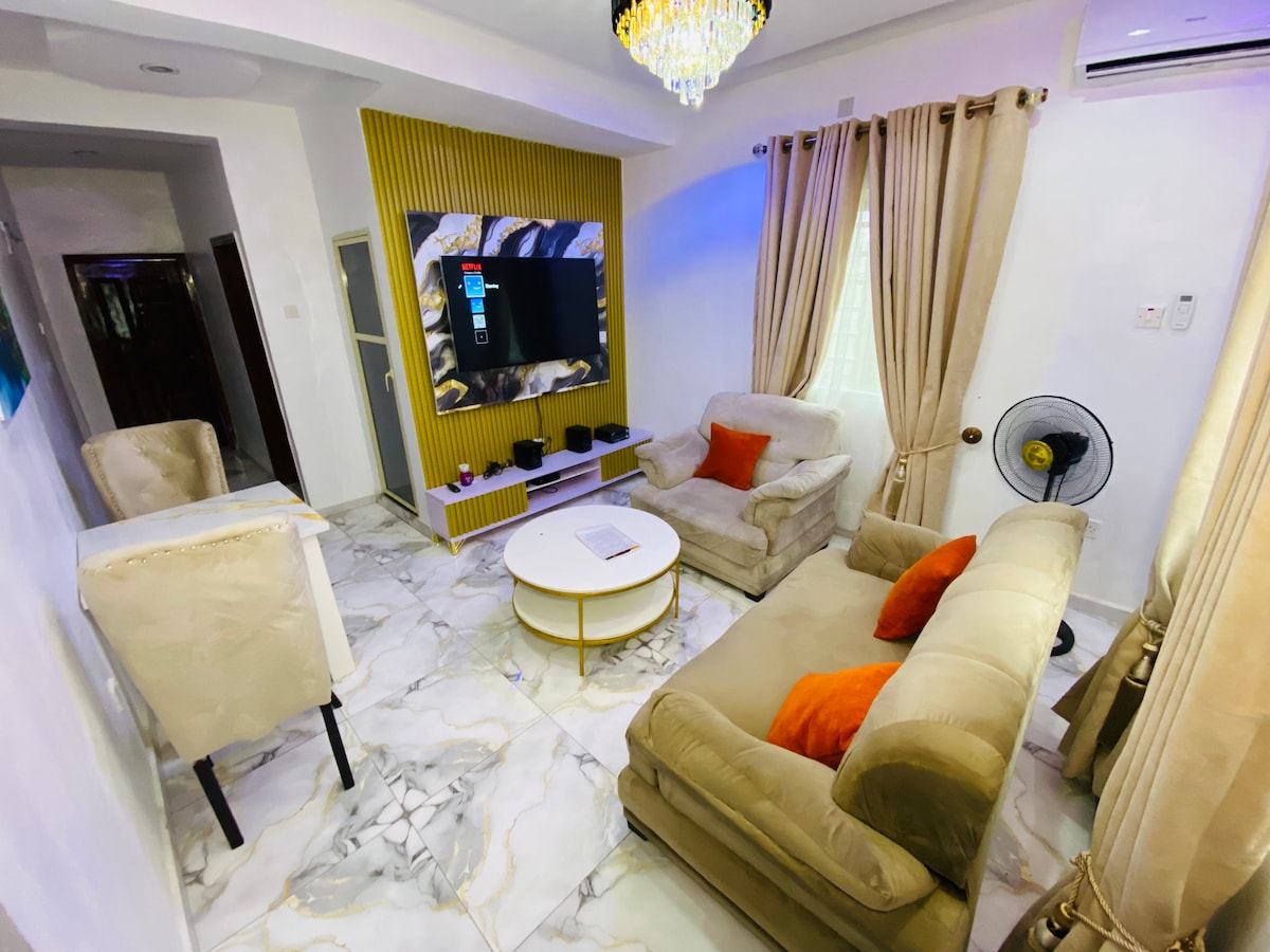 Enjoy a modern 3-bedroom apartment with everything you need for a comfortable stay. This spacious home features Wi-Fi, 24/7 electricity, clean running water, and four private toilets, offering convenience and privacy for groups or families. Located in a prime, easily accessible neighborhood, you’ll enjoy quick access to restaurants, shopping, and key city attractions. making it perfect for both short and long stays.