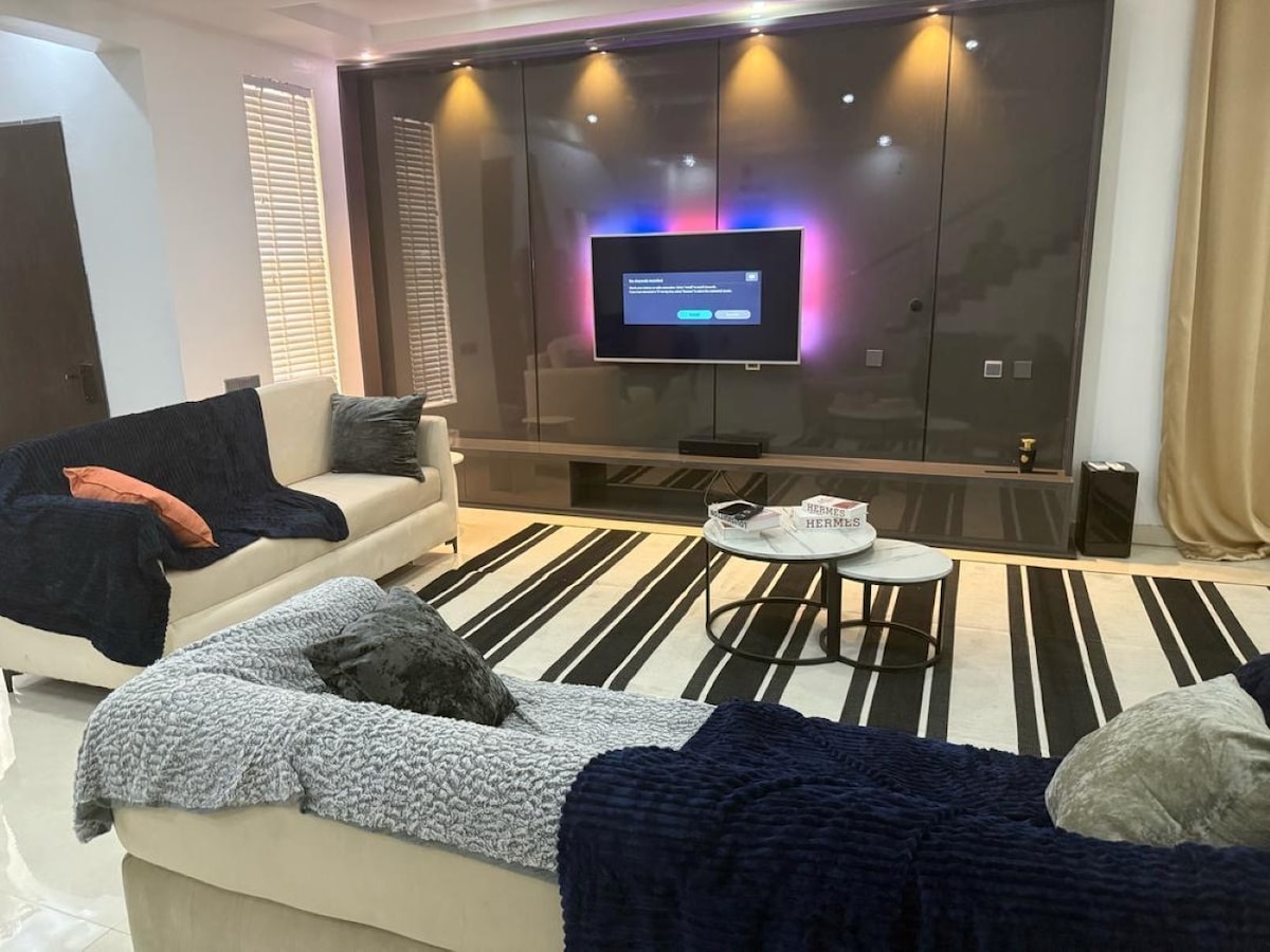 Luxury Designer Villa – Lekki Phase 1 Experience elegance and comfort in this spacious, private villa in Lekki Phase 1. The rooftop lounge features an outdoor bar, rooftop Gazebo, BBQ, and stunning sunset views, perfect for relaxation and entertainment. Enjoy full access to the entire villa, including a state-of-the-art private cinema, stylishly furnished spaces, and high-end amenities, from the bedrooms to the rooftop overlooking the city.