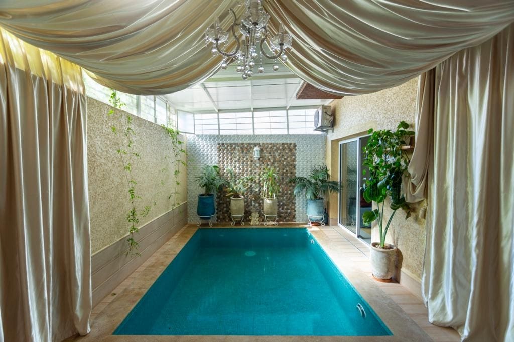 Séjournez en plein cœur de Marrakech dans notre appartement 2 chambres et 2 salles de bain. Profitez d'Une literie Simmons haut de gamme, WiFi haut débit (fibre optique) et d'une décoration moderne avec un bassin privé. Cuisine entièrement équipée, baignoire élégante, et douche italienne. À quelques pas de la place Jemaa el-Fna, du Plazza, et du Carré Eden. La piscine n’est pas chauffée. NB: Les couples marocains non mariés ne sont pas autorisés.