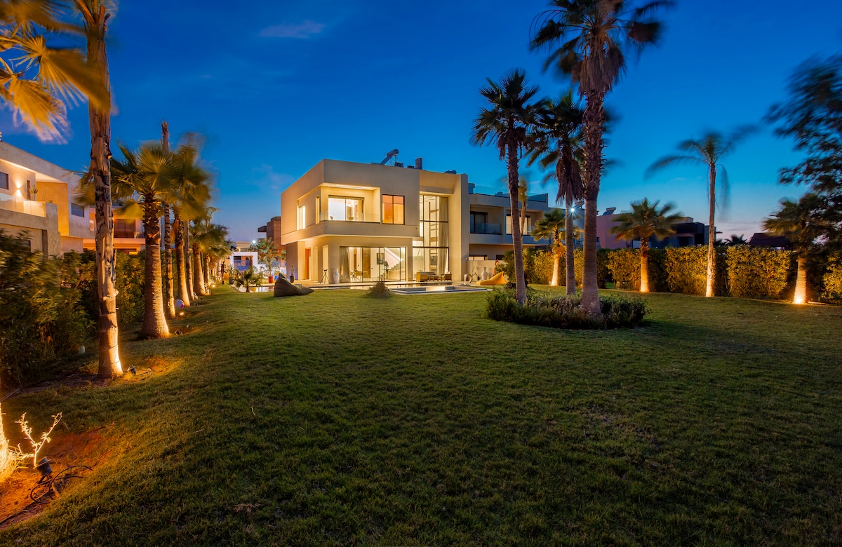 Welcome to this stunning contemporary 450 m² villa, nestled in the heart of the prestigious Domaine Noria – one of Marrakech’s most sought-after residential areas, known for its peace, security, and proximity to top-tier golf courses. Located in a secure gated residence, the villa is just 10 minutes from both the city center and Marrakech Menara Airport, offering easy access while ensuring total tranquility during your stay.