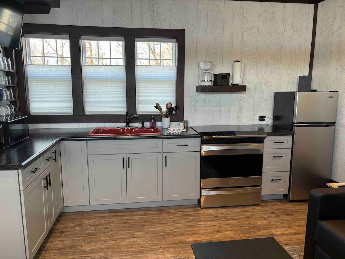 Are you looking for a quiet, relaxing and peaceful place to stay? Look no further, this little cabin is all that and more! These pictures do not do the cabin justice, we have heard this from so many guests that have stayed at our cabin! You will not be disappointed with your stay at our cabin. The kitchen is equipped with a stove, microwave, refrigerator and dishwasher. A front and back porch with beautiful views to drink a cup of coffee, read a book or relax! We hope you will come stay soon!