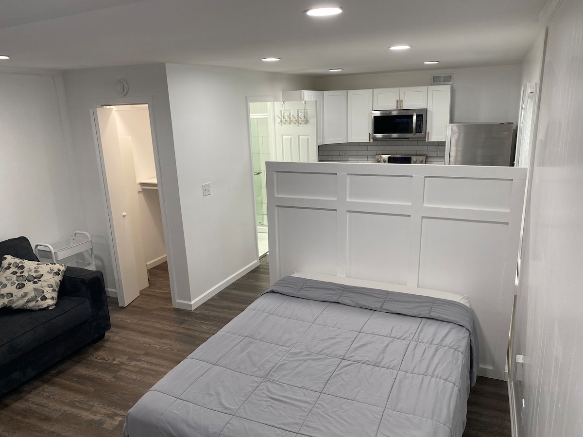 Stylish studio apartment in new construction in the heart of Midtown Columbus. Quiet neighborhood 15 min from Ft. Moore and 8 min from Uptown Columbus. Dedicated entrance and private patio for enjoying peaceful evenings. Kitchenette with refrigerator, hot plate, air fryer toaster oven, microwave. This is a private apartment downstairs from a family home. NOT 420 friendly. Quiet hours 10pm to 6am strictly enforced. Normal family sounds above - not a good fit if you plan to sleep all day.