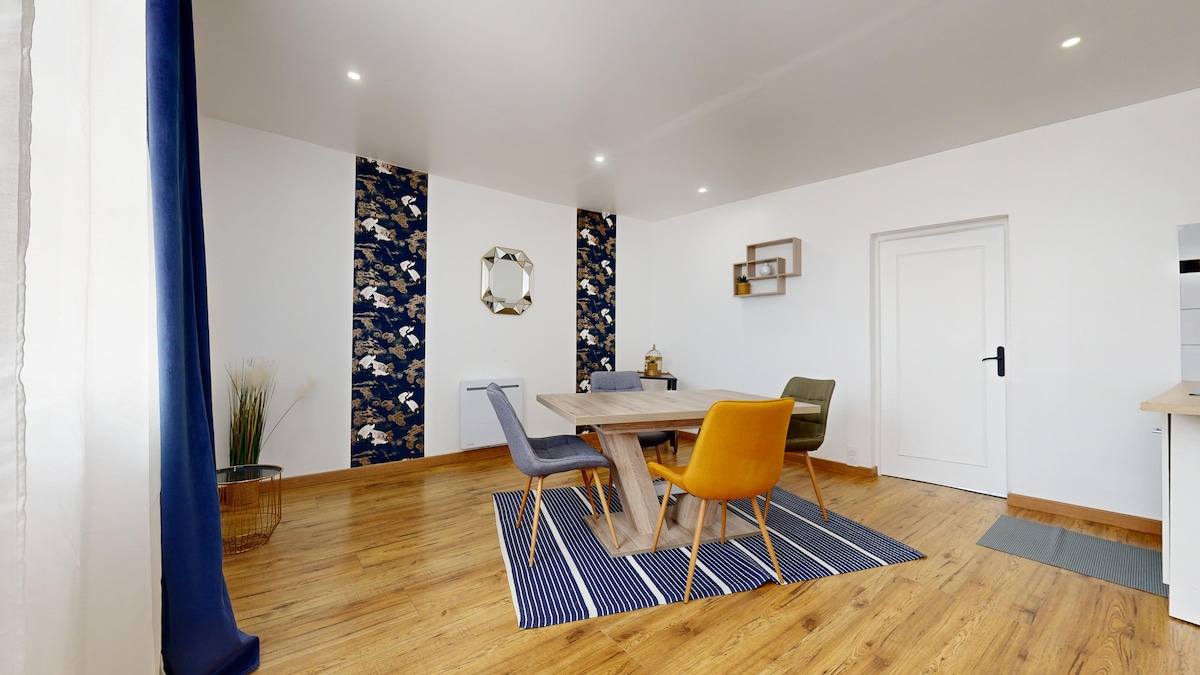 Cette maison de famille à la campagne offre un espace de vie ouvert, combinant cuisine, salon et salle à manger dans une pièce lumineuse et chaleureuse. Elle dispose d'une salle d'eau et d'un wc séparé pour plus de confort. Deux chambres spacieuses vous assurent un sommeil paisible en toute tranquillité. Situé dans un petit hameau, elle représente un refuge idéal pour ceux en quêtes de calme et de simplicité, tout en offrant convivialité et fonctionnalité. Internet Fibre idéal pour télétravail.