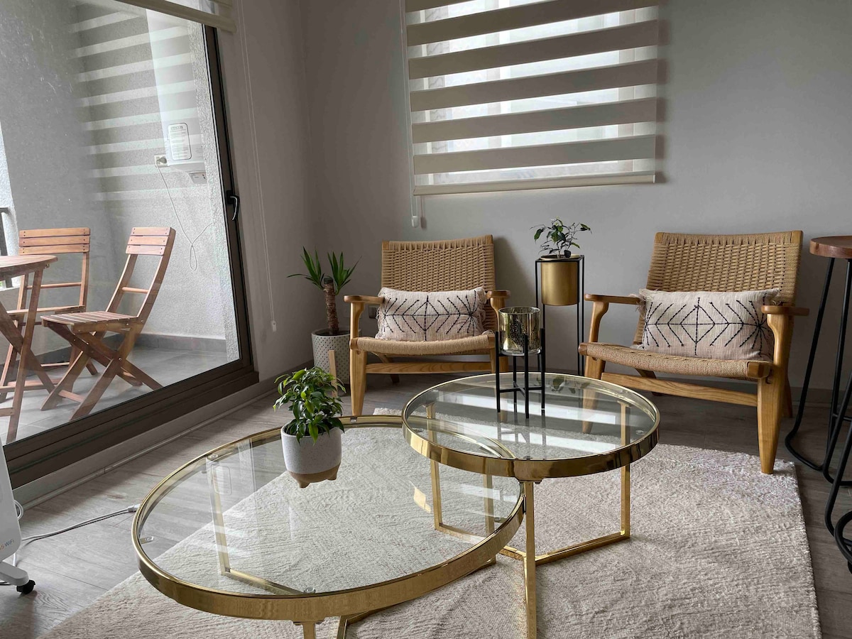 Hola 👋 mi nombre es Paz 🙋♀️ que gusto tenerte por acá 😊 te informo que te vas a hospedar en el centro de Chillan 👏😎 Disfruta de una experiencia con estilo y hospédate en este de departamento en el corazón de Chillan. Principales atractivos de la ciudad y centro comercial a una cuadra, locomoción a la puerta. Descansa en el edificio más elegante de la ciudad. Disfruta de un internet de alta velocidad. Tv HD con variedad de canales. Espacioso balcón. Piso 9 OJO SIN ESTACIONAMIENTO Reserva ya !!