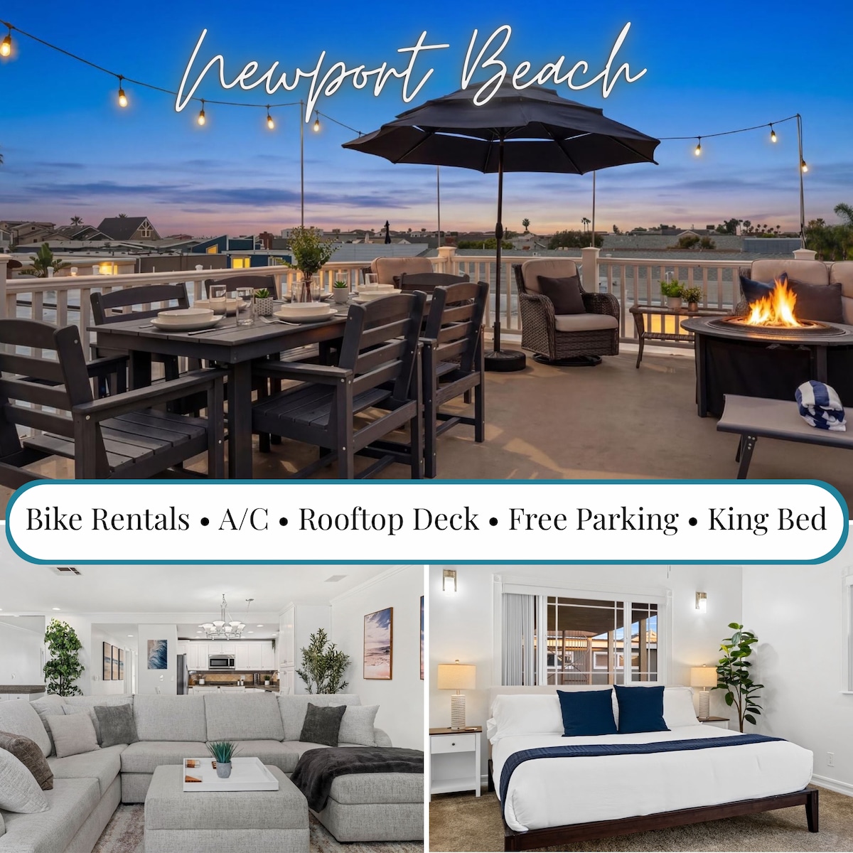 Top 1% in Newport Beach—Sip wine at sunset by the fire pit. Stroll 2-mins to the sand, Newport pier, and waterfront dining. Surf Casita was custom designed for laid-back luxury with A/C ❄️ and EV parking. Prime location — no car needed. Why guests love it: ✓ Prime beach location ✓ Private patio with fire pit ✓ Central A/C (rare) ✓ Garage + L2 EV charger ✓ Beach gear provided ✓ Warm outdoor shower ✓ Chef's kitchen ✓ 85" TV + stream Sonos music Guest Favorite — 4.99★ from 193 stays