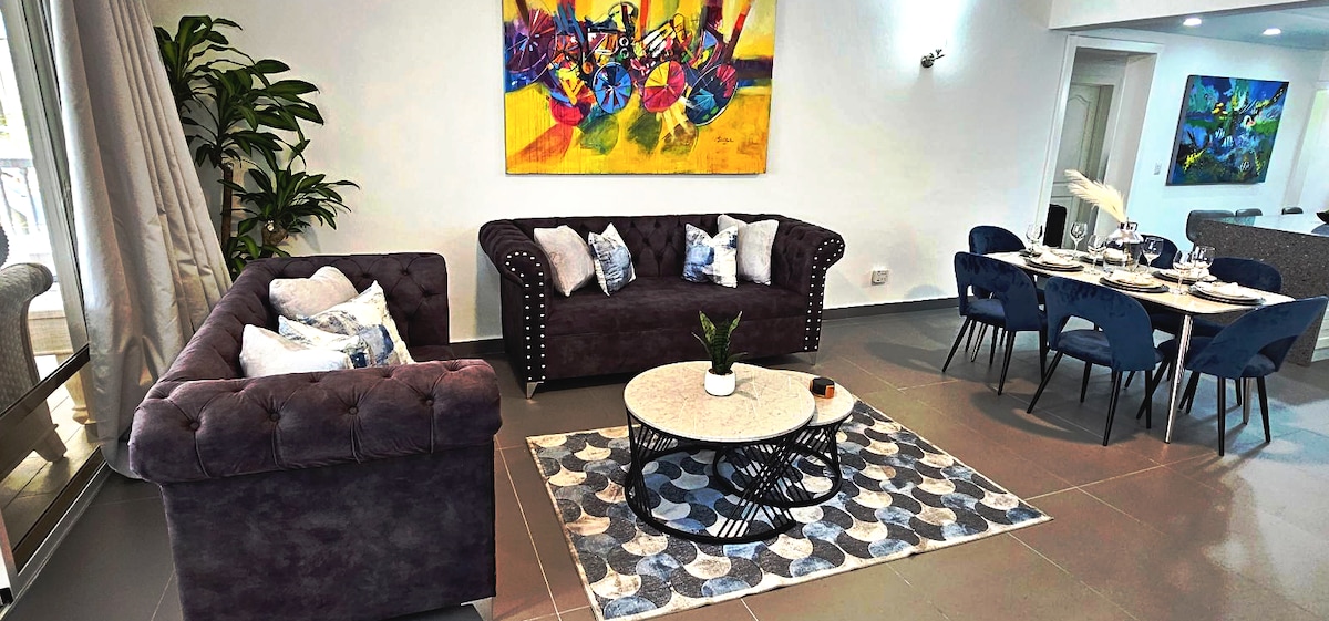Relax and feel the sea breeze in this Modern ocean side community 2 bedroom condominium apartment..... New Apartment with pool frontage and rooftop access. 24 hours security with concierge... Driver and transportation rental available on demand