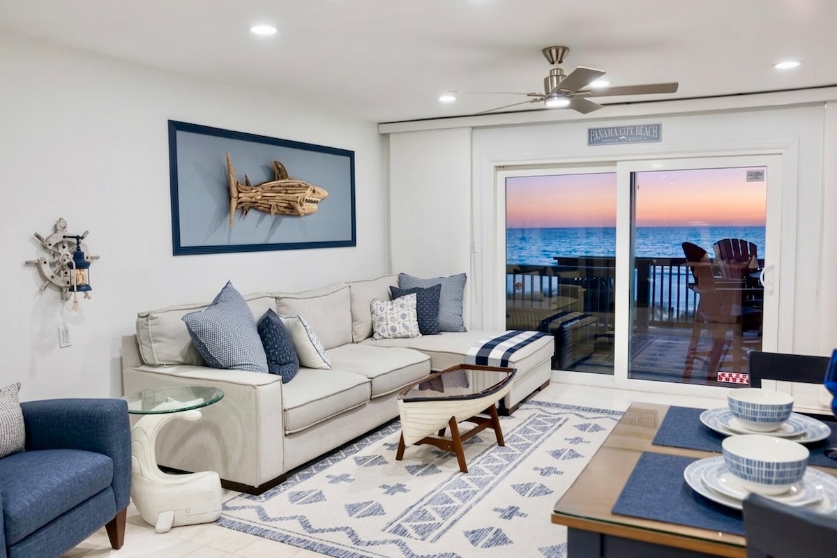 NO EXTRA FEES AFTER BOOKING! Wake up to Gulf views from your PRIVATE BEACHFRONT BALCONY in this charming, low-rise condo. Step directly onto sugar-white sand and emerald waters just outside your door. Enjoy a year-round, seasonally heated pool with an easy walk to Pier Park for dining, shopping, attractions, and nightlife. Looking for different dates or layout? I own 5 condos in this building. Click my host profile, then scroll down to view all of my listings.🌴