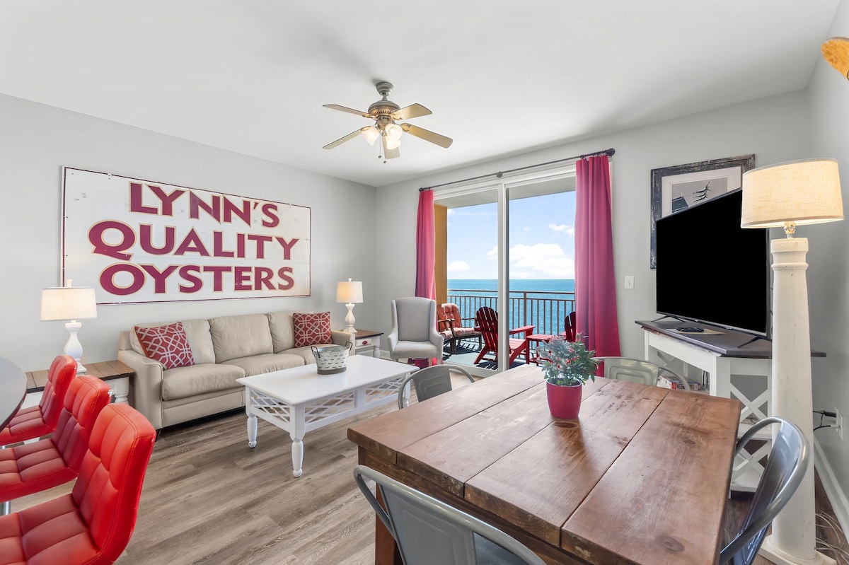 My Happy Place | 2BR+bunkroom/2BA 15th floor condo w/ epic Gulf views! FREE beach setup (2 chairs+1 umbrella, Mar–Oct 2025) plus access to 8+ extra chairs, 3+ umbrellas, toys, books & games. Picture yourself lounging on the balcony, splashing in the pool, or grilling dinner after sunset! Super-fast WiFi, 4 TVs, washer/dryer, well-equipped kitchen, & balcony grill. Resort hot tub, fire pit & good vibes included. $50 Resort Pass (0–1 car/stay), $100 for 2. Weekends book fast—weekday rates shine!