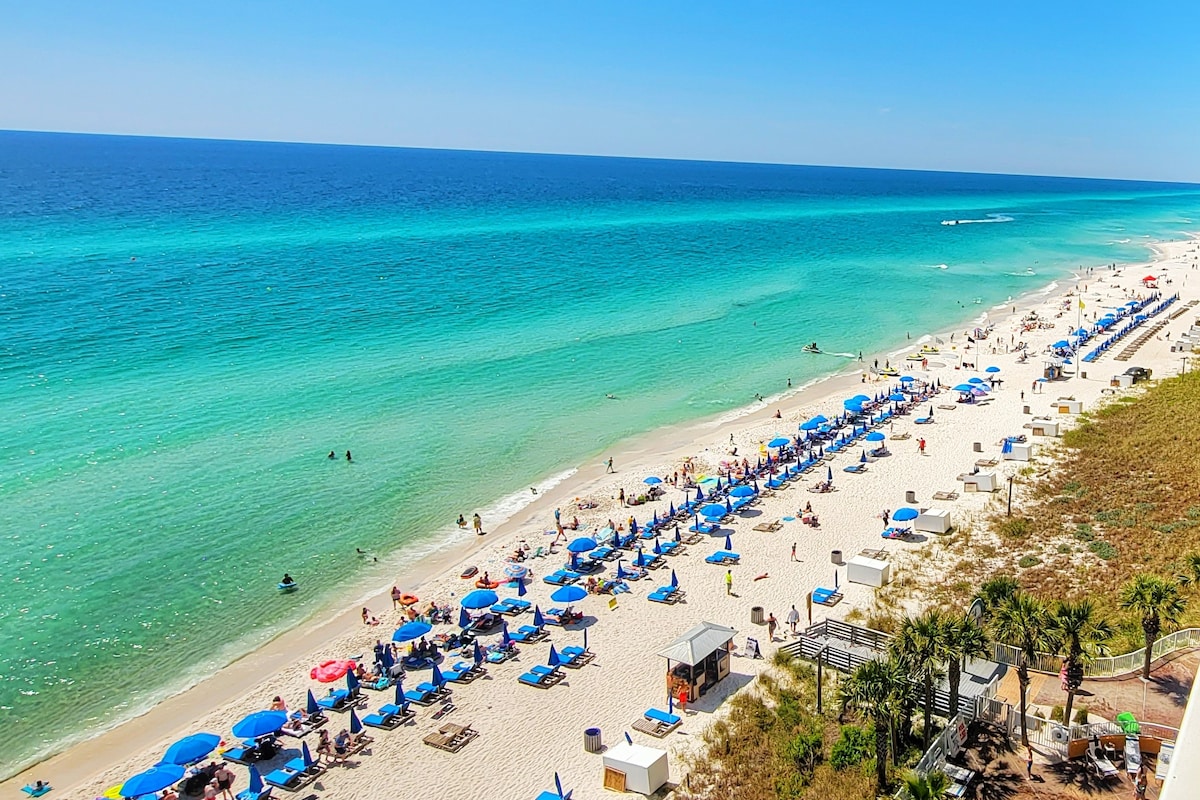 BeachView Paradise is a beautiful 1 bedroom/1 bathroom BEACHFRONT corner penthouse condo located at Tidewater Beach Resort on the 27th floor with jaw dropping views. Recently renovated down to the studs, it was curated with thoughtful design and high end finishes. A quick elevator ride down and you are right at the pools or the beach. All of this in a beachfront resort full of amenities and a quick walk to Pier Park loaded with restaurants, shopping and family fun. Take a look!