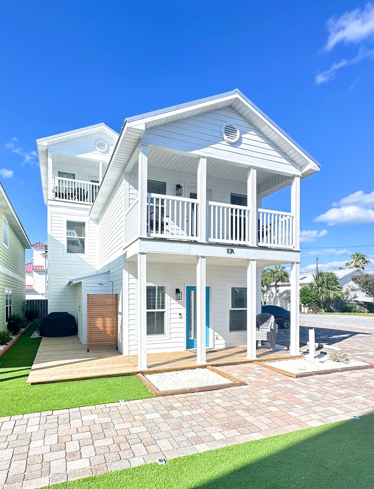 Welcome to this relaxing coastal getaway. You'll enjoy the pool, covered patio for grilling, and taking in the sunset on the deck upstairs. The home sleeps nine, has a brand-new kitchen, family room to unwind, and blazing fast internet to work or stream movies. You'll be just a ten-minute walk to the beach, and a short drive from 30A and Pier Park. We are dog-friendly with payment of a $170 pet fee. Three dogs maximum. Pool heating is available for $40/day. Details below.