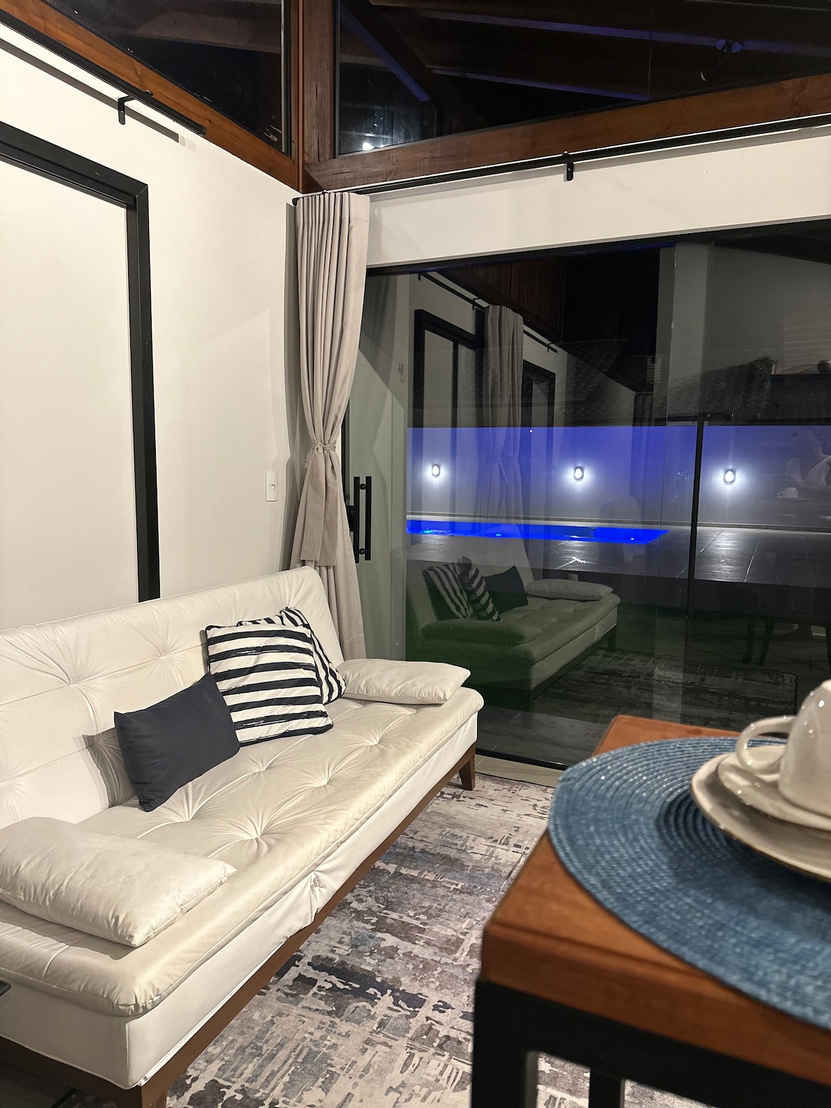 Divirta-se com sua família neste lugar com um design diferenciado. Casa individual com espaço externo compartilhado, acomoda até 4 pessoas. Piscina com ofurô. Completa com churrasqueira individual, ar condicionado, portão eletrônico e segurança. Fica à 500 mts da praia e a 7 minutos do centro de Laguna, restaurantes, bares e comércio. Na Praia do sol, você encontra sossego, natureza preservada, agua cristalina. Venha compartilhar de momentos inesquecíveis.