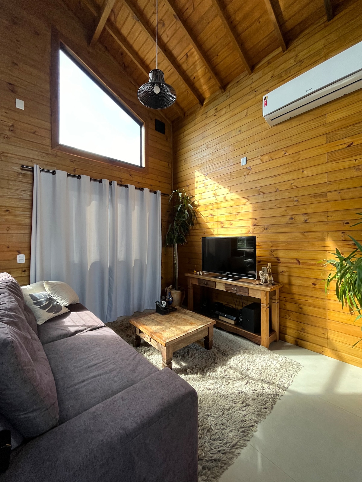 Relaxe neste espaço calmo e cheio de estilo. A poucos minutos da Praia de Itapirubá, nosso chalé acomoda perfeitamente 6 pessoas, compacto e charmoso, possui 2 camas de casal, mais um sofá cama. Cozinha de ilha equipada com coocktop , micro-ondas, mini geladeira, edícula compartilhada com mesa de bilhar, churrasqueira, ideal para reunir os amigos, pátio grande com praça de fogo. Dispõe também , cadeira de praia, guarda-sol e pranchas de surf. venha viver essa experiência.