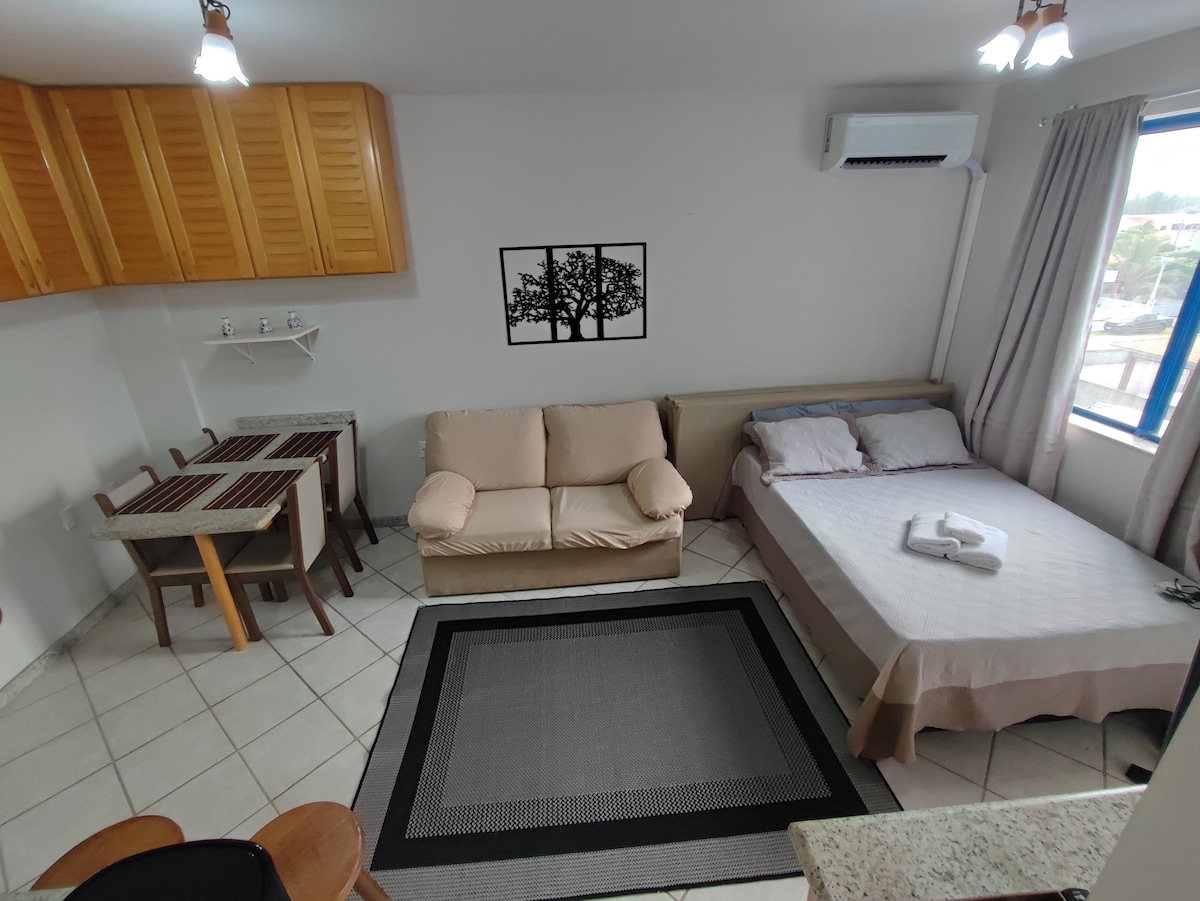 Loft mobiliado, a 300m do mar com vista para o nascer do sol, o Farol e o mar da Prainha. Com capacidade para 3 pessoas, aceitamos um pet🐾 *Possue Deck com vista para o Farol e o Mar *1 Cama de casal *1 Sofá cama * Não disponibilizamos roupa de cama/ manta e toalhas de banho. *Smart TV *Wi-Fi *Estacionamento *Piscina Térmica *Sauna *Academia *Sala de Jogos *Churrasqueira *Aquecedor *Cozinha completa