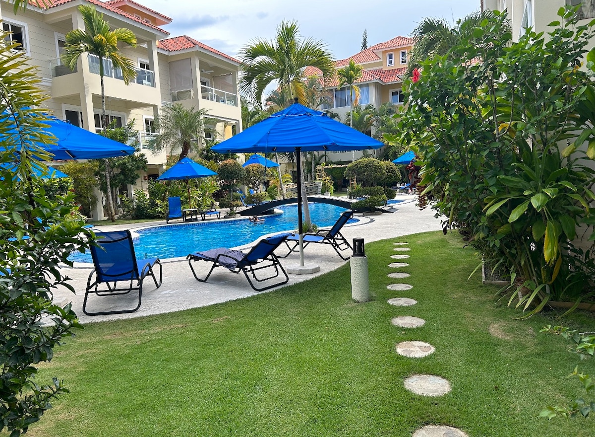 Enjoy this comfortable Caribbean 1-bedroom apartment, located in Phase III at Ocean One Gated Community, in the heart of Cabarete. You will be close to everything when you stay at this centrally-located place, only at a few minutes walk from Cabarete's main restaurants, cafes, services, and attractions. Locker for water sports gear (kitesurf & co) AC + ceiling fan in the bedroom and AC + ceiling fan in the living room. 24/7 electricity and water 24/7 security Pool and BBQ area King size bed
