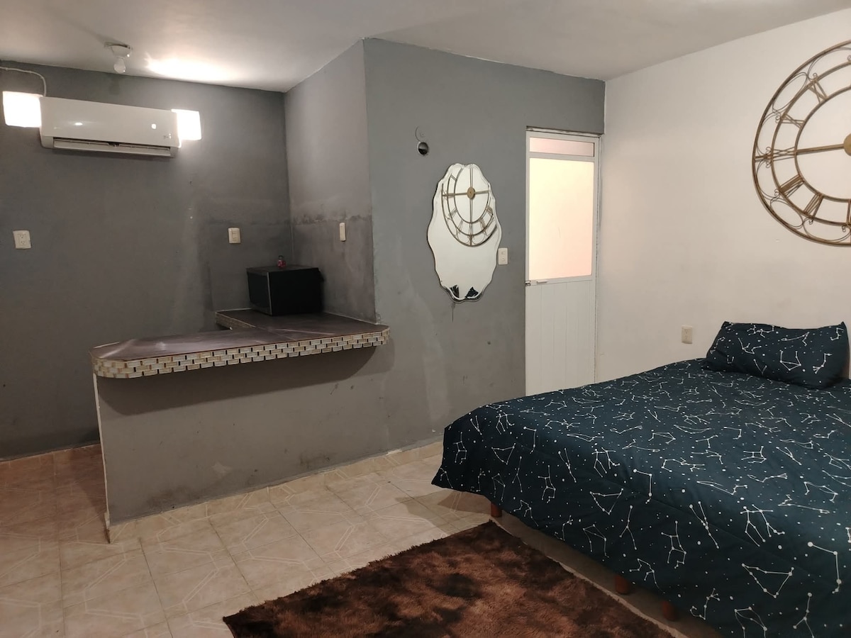 Cómodo departamento monoambiente en Colonia Francisco I Madero entrada independiente y SOLO ACCESO AUTÓNOMO mediante clave proporcionada por el anfitrión. NO TIENE Estacionamiento PRIVADO pero se puede estacionar en la calle ya que contamos con cámaras Cerca del ADO Walmart,Helipuerto , Aeropuerto CheckIn A partir de las 3:00pm CheckOut 12:00 pm Se agradece la puntualidad del huésped a la hora del checkout Si el huésped no ha realizado checkout pasada las 12:30 Hrs se pueden realizar cargos
