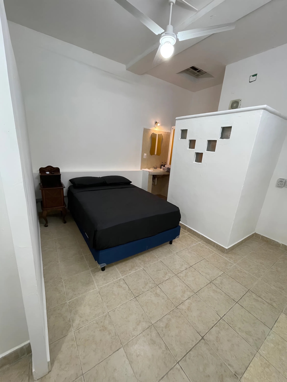 Te ofrecemos un espacio perfecto para 2 personas con cama Queen, equipada con todos los servicios como: Smart TV con Netflix, Wifi, Cable, Aire Acondicionado, Agua caliente, Cocineta con Frigobar, Parrilla Eléctrica, Microondas, Licuadora, Cafetera, Utensilios de cocina, Platos, Cubiertos, etc. A 1 km de la Playa, ubicada en el Centro Histórico a 3 cuadras de la Iglesia del Carmen, 3 cuadras del Malecón, a 2 kms de Playa Norte y del Malecón Costero cerca de bancos y restaurantes.