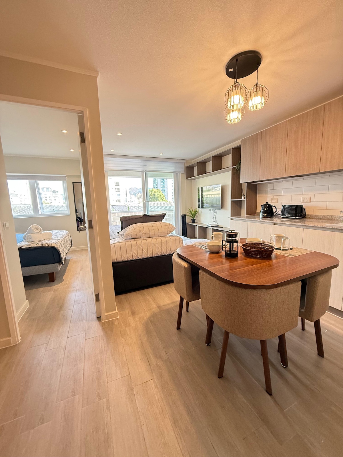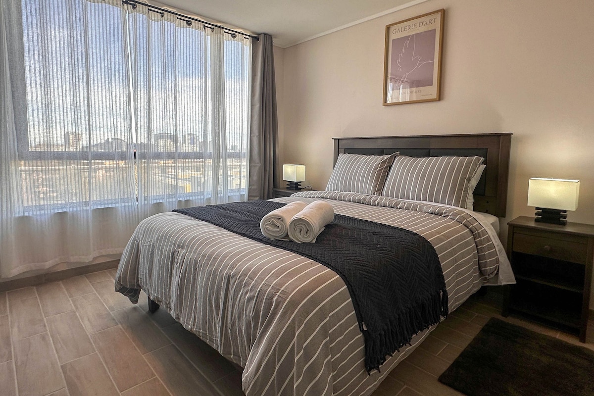 Moderno y tranquilo departamento en pleno centro de Concepción. Cuenta con cama de dos plazas, cocina equipada, wifi rápido y baño privado. Ideal para descansar, trabajar o estudiar. Ubicación perfecta: cerca de supermercados, restaurantes, parques y la Universidad de Concepción. Un espacio cómodo, seguro y acogedor para tu estadía.