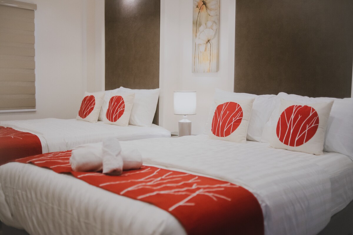 The rooms is good for 2 persons and can accommodate maximum of 4 pax. The room design is simple and it is not shared with other guest. Perfect for couples, business travelers, families (with kids) and big groups. We have 24 hrs lobby assistance that can assist you anytime and our lobby has UV ray and always sanitized including all rooms.