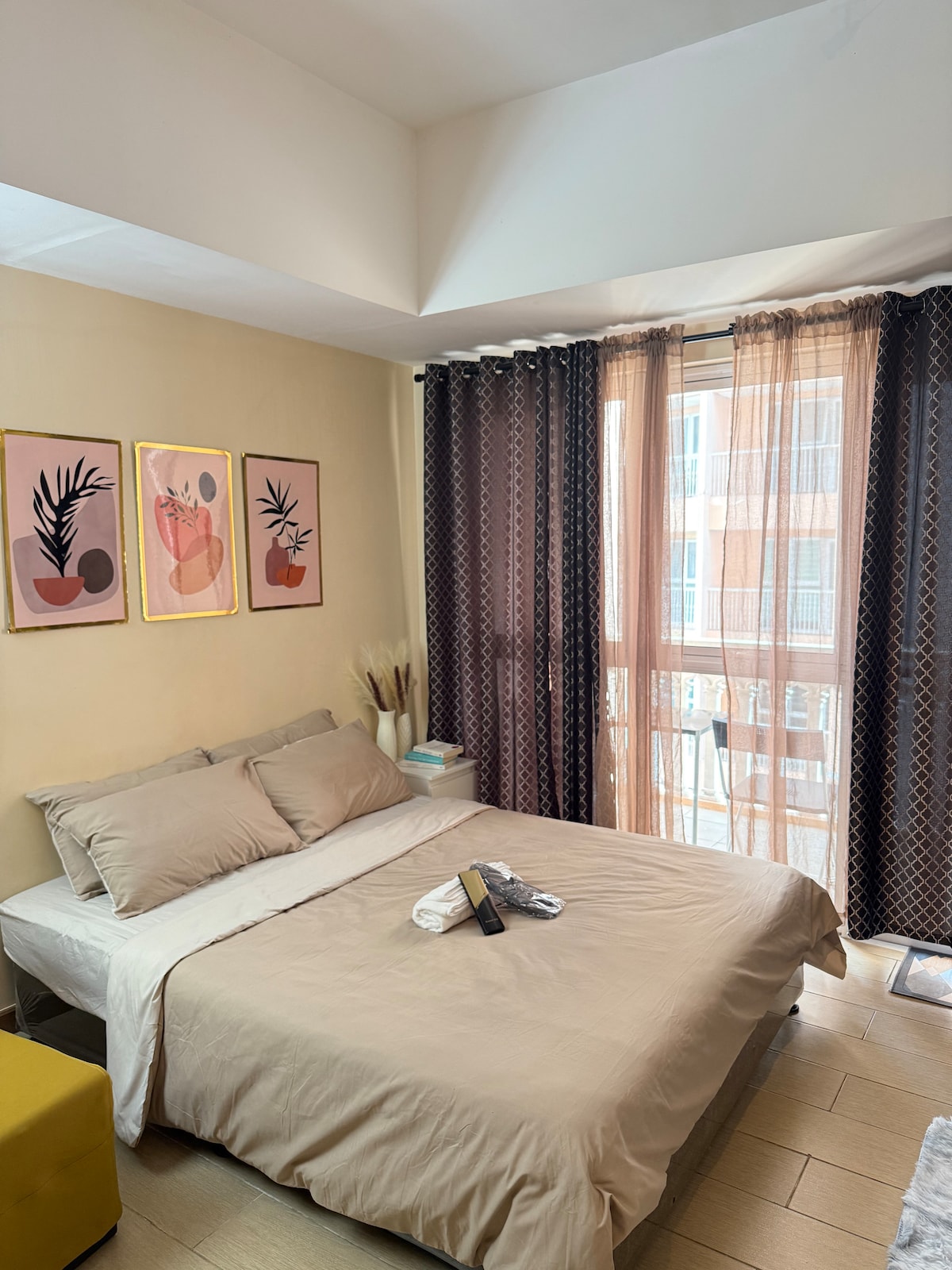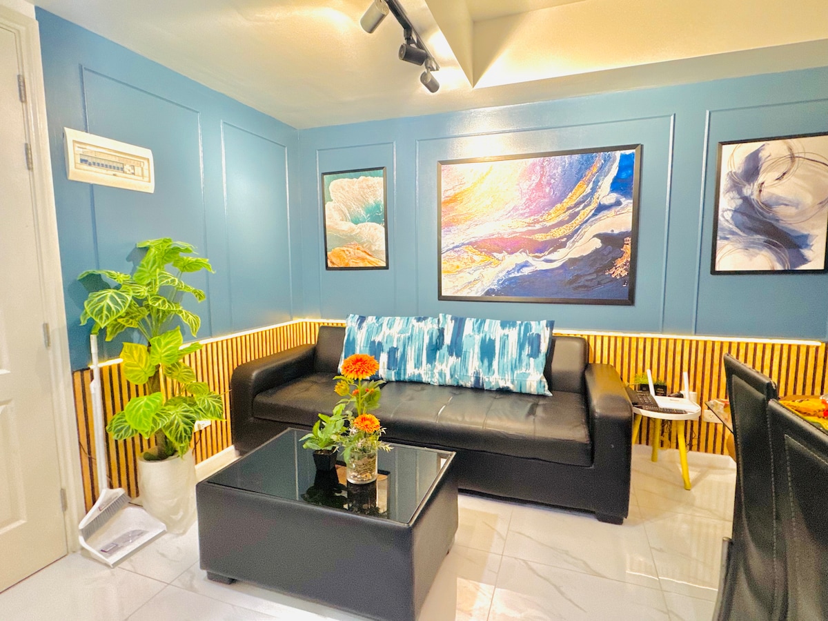 Stay in the center of the action in this one-of-a-kind place. Near to everything that you need. A very nice place to stay, hangout or just chill. * Aircondition * 65-inch TV * Soundbar Speakers w/ Subwoofer * WiFi * Air Purifier * Bed Size Double 54x75 * Pull-out Bed size twin KITCHEN * LG Refrigerator 7cuft. * Induction Cooker * Microwave Oven * Electric Kettle Pots & Pans * Kitchenwares & Utensils * Dinnerware BATHROOM * Single Point Water Heater * Fully Automatic Washing Machine
