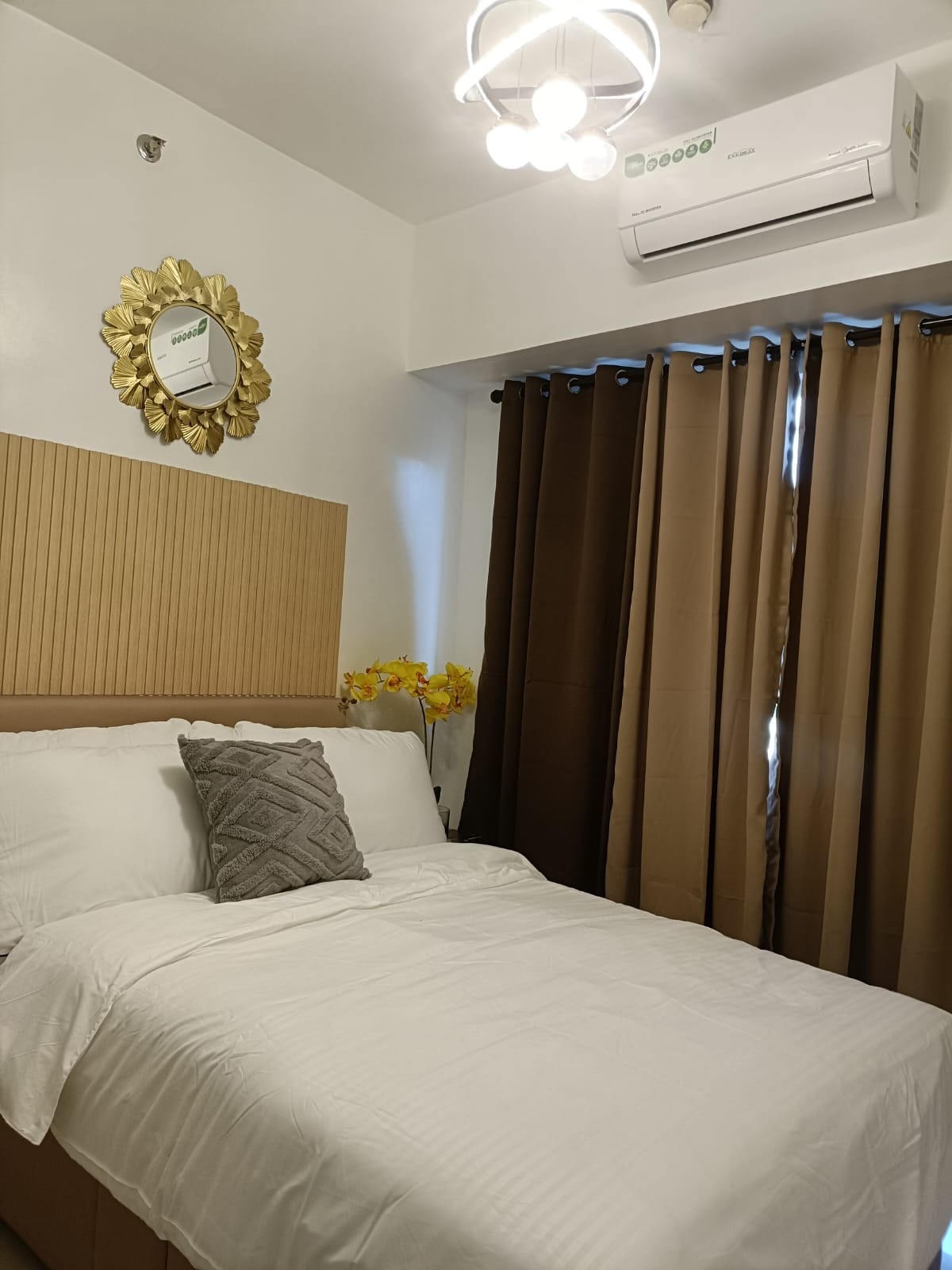 A cozy modern Scandinavian/tropical retreat nestled in the heart of the city. This is a place where you can relax, unwind and have fun with your loved ones or just by yourself. The living area is adorned with light-colored wooden floors, providing a warm and welcoming ambiance. Furnished with simple yet stylish Scandinavian/Tropical furniture. The kitchen is fully functional. Equipped with all your cooking needs. The bedroom’s minimalist design will for sure give you a restful night’s sleep.