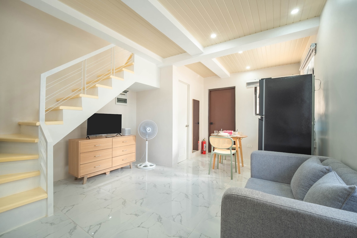 Enjoy a contemporary stay in this fully furnished 2-bedroom townhouse with a sleek industrial touch. Located in the heart of Antipolo, it offers easy access to cafés, restaurants, and popular spots like Pinto Art Museum and Hinulugang Taktak. With its stylish interiors, complete amenities, and cozy atmosphere, this space is perfect for a relaxing getaway or a comfortable long-term stay.