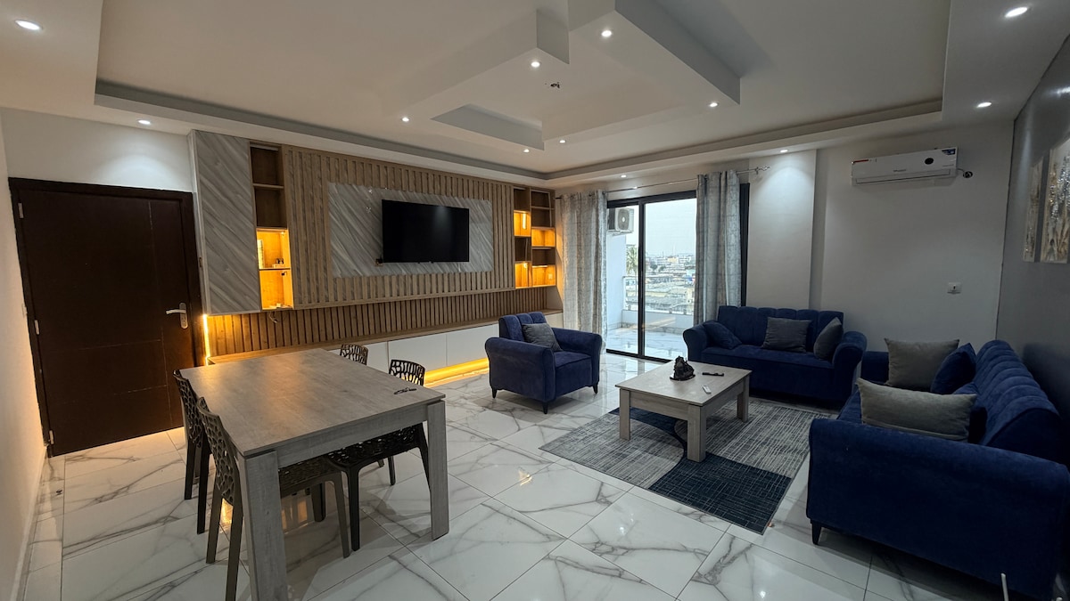 Séjournez en plein cœur d'Abidjan dans ce sublime appartement neuf, paisible et chaleureux, décoré avec goût dans des tons naturels et une ambiance moderne propice à la détente. Cet appartement spacieux et entièrement privatisé est situé au 2ème étage d’une résidence calme et sécurisée, parfait pour un séjour professionnel ou des vacances reposantes. Le logement est situé à 25 minutes du Plateau, 35 minutes de l’aéroport et à 10 minutes d’Abidjan Mall.