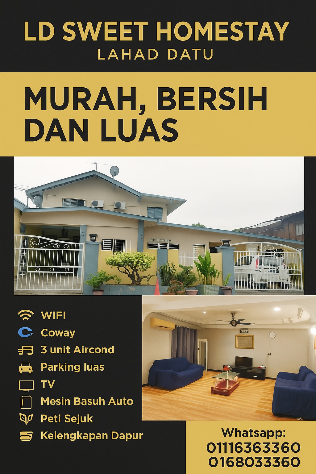 🏡 Welcome to Alur House in Lahad Datu Experience a relaxing and spacious stay at Alur House homestay located in the peaceful residential area of Taman Aman 1, Lahad Datu. Designed for families, group travellers, or work-related trips. Whether you’re visiting Lahad Datu for a short getaway, attending a wedding, or simply looking for a quiet place to unwind, Alur House welcomes you with open arms. The house combines with warm touches of modern rustic decor that will make you feel right at home.