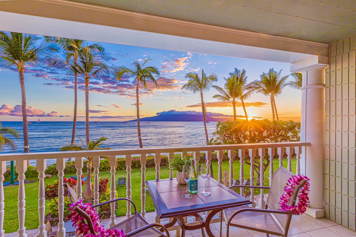 Locally Owned and Operated 1BD/2BA condo with the best direct beachfront location, panoramic Ocean views, sunsets, and seasonal whale watching. The owner’s spared no expense in renovating this unit making it hand’s down one of the nicest units in all of the Mahana. Wake up to the cool tropical breeze and sounds of the shoreline just 50 feet away. Floor to ceiling windows in the living area and bedroom bring the stunning views and warm Maui sun inside while central AC keeps you cool inside.