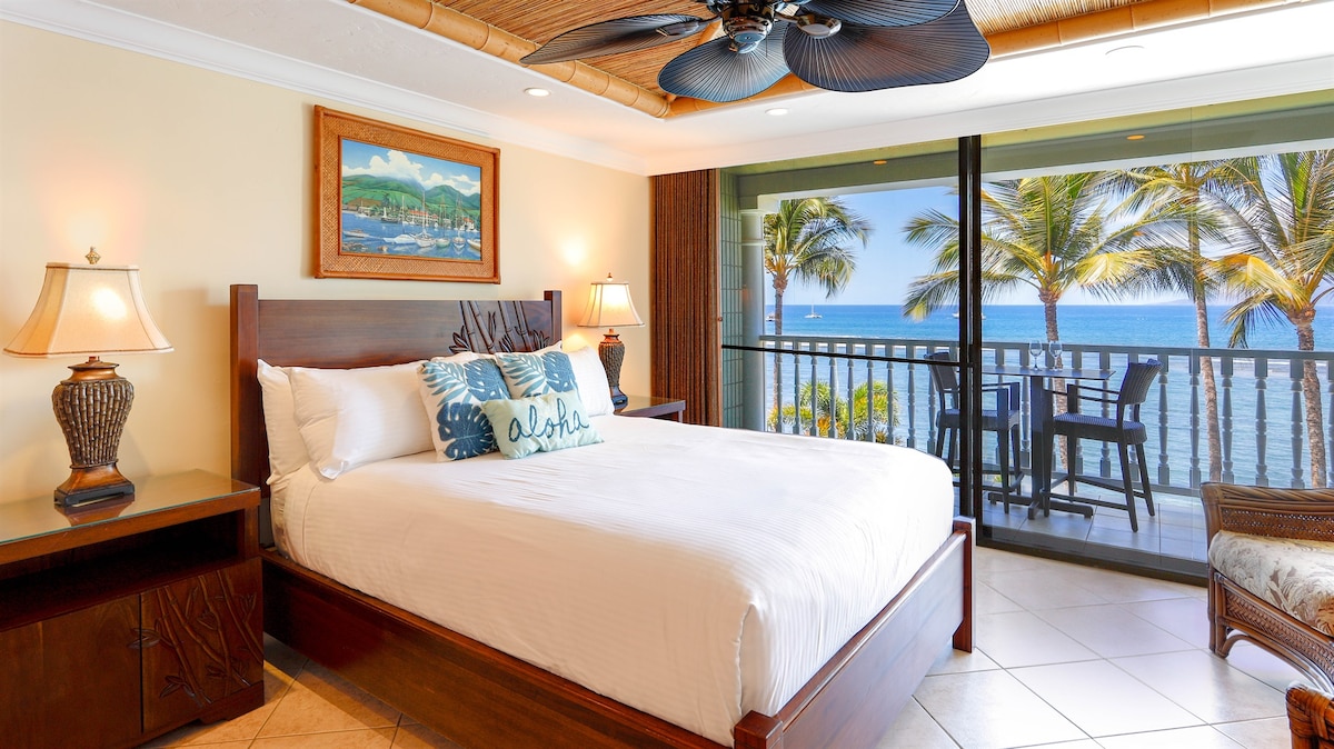 We are a LEGAL Short Term Rental. If STRs are banned, we will refund your reservation money. We are 6 miles north of the fire. Our beaches, sunsets & ocean are still amazing. Remodeled Large Studio w/ AC. Sleep 30' from the ocean to the sound of waves! PANORAMIC VIEWS/SUNSETS! 2 Relaxing Oceanside POOLS & hot tub. Fully-equipped kitchen. Walk-in rain shower. GREAT LOCATION! Close to Kaanapali, Kapalua, groceries, restaurants, beaches. TURTLES love this area. Free Parking. No Resort Fees.