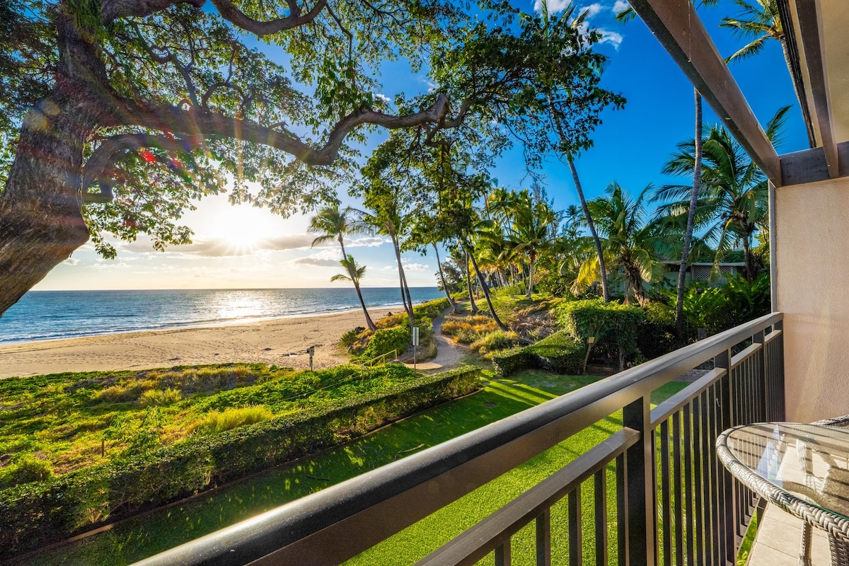E Komo Mai to our remodeled oceanfront unit with stunning ocean view at the Nani Kai Hale. Feel the ocean breeze, listen to the waves, and watch the whales and sunsets from our tranquil, oceanfront condo. From our comfortable lanai seating you have view of the Islands of Molokini, Kahoolawe and Haleakala while enjoying your morning coffee, evening cocktail, or anytime meal. Walk along the beach and experience beautiful sunsets framed by swaying coconut palms.
