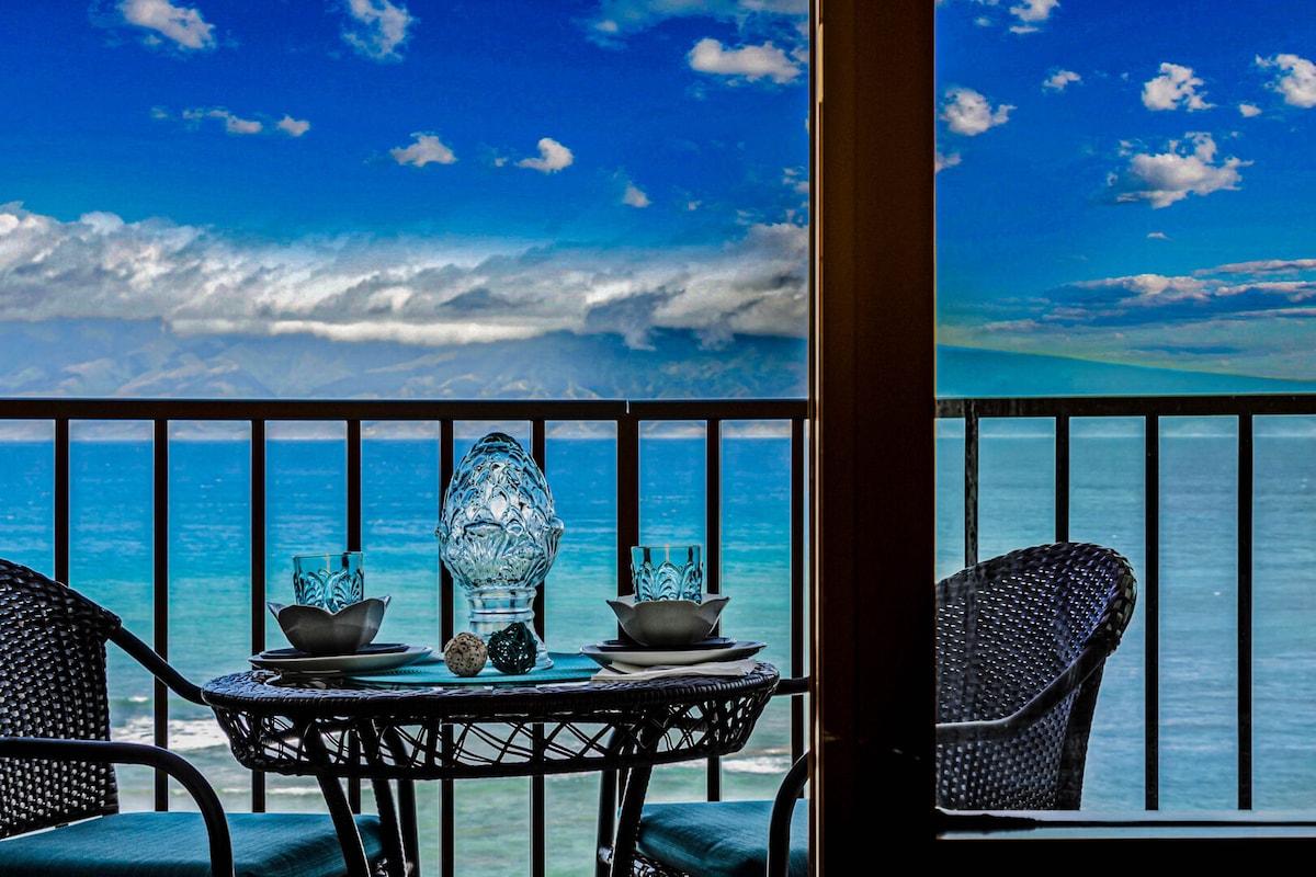 *Available for booking! Thankfully, our condo is not located in the wildfire affected area* Enjoy breathtaking panoramic views in this remodeled oceanfront corner condo located on Kahana Beach! With floor-to-ceiling windows in both the living and bedroom, gentle breezes and sunsets can be enjoyed lounging on the couch or relaxing in bed. Imagine falling asleep to the lull of ocean waves at your feet and waking to spouting whales in the background. Truly an oasis on the Valley Isle.
