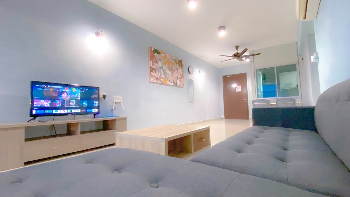 100MBps Unifi. A wonderful relaxing stay at Ipoh with a tatami style studio. Equipped 2 Queen beds inside a private air conditioned room with wardrobe, makeup mirror and attached bathroom. The air con living area is furnished with a soft and comfort tatami mat and a 3-seater sofa with 42" Google TV (Neflix-own account and YouTube app ready). Stove, kettle, fridge, microwave with a dining table & coffee table, washer, iron, hair dryer & vacuum is ready. 2 towels & small cushions available.
