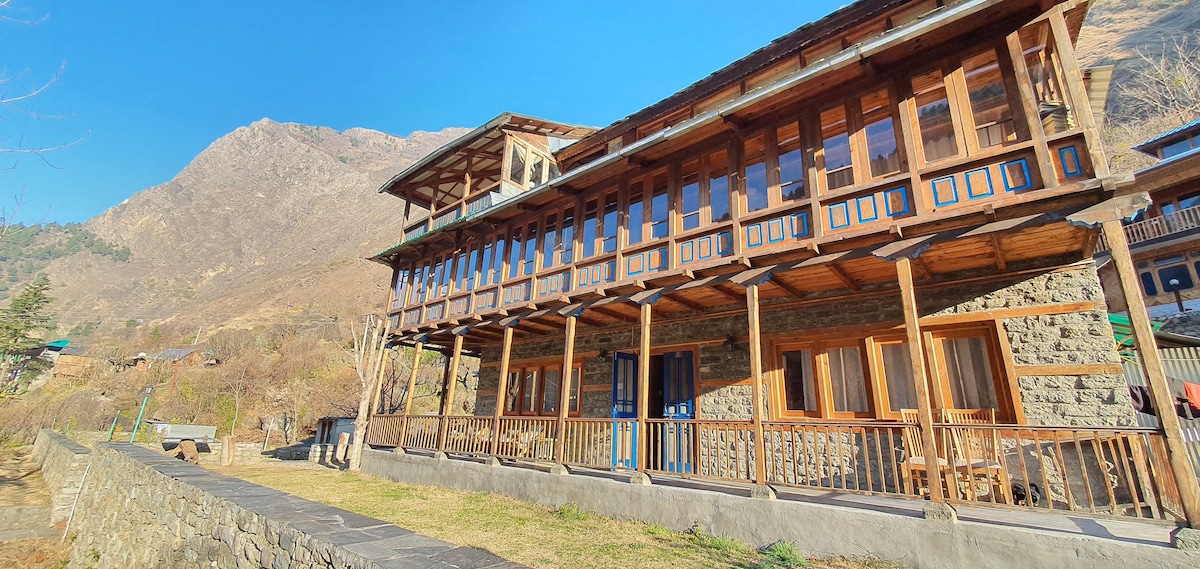 Welcome to the Charming Abode Room at The Pine Chalet, a tranquil retreat nestled on the banks of the mighty river ‘Beas’ in Old Manali (5 kms from the main mall road & 2 kms from the Old Manali market). An ideal retreat for couples seeking a romantic getaway and individuals seeking solitude and rejuvenation away from the hustle and bustle of city life. Breathe in the fresh air, soak in the stunning views or simply relax in the lap of nature. Your Himalayan Odyssey awaits you.