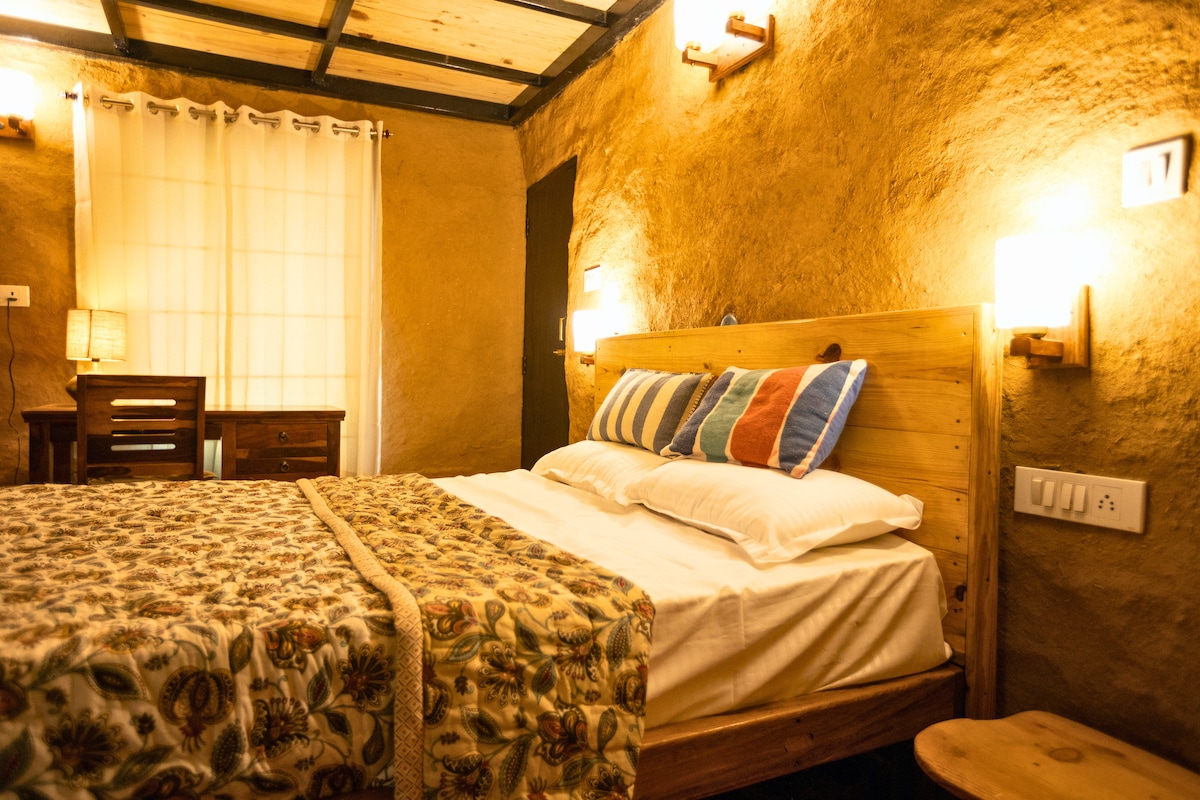 Welcome to the classy earth bag constructed Shino Room at Byool Farm, a peaceful escape with stunning views & modern amenities amidst a serene farm setting. At Byool Farm, we go beyond luxury. Explore our dairy, farm, and ceramic pottery studio. Join us in planting, harvesting, or simply observing our daily tasks. Stay connected with Wi-Fi access, or unwind in the cozy setting. Enjoy fresh and organic produce straight from the farm. Wake up to clear mountain views and enjoy a relaxed stay.
