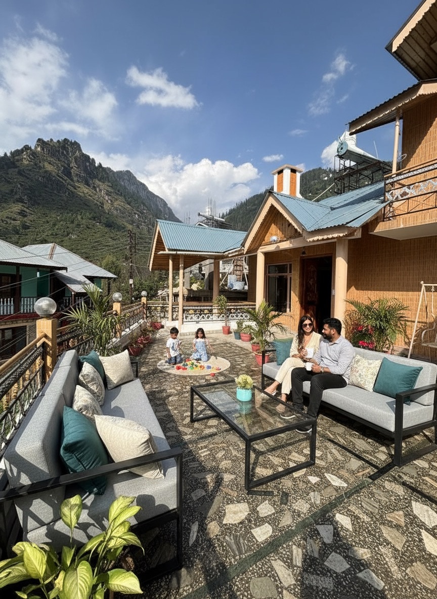 “The Manali Stay Everyone’s Booking! Don’t Miss Out!" Boutique 3BHK in Manali’s apple orchards with epic mountain views Private balconies, warm wooden interiors & cozy bedrooms Fully equipped self-cook kitchen perfect for families & groups Bonfire nights, stargazing, nature walks & calm surroundings Just 15 mins to Mall Road, 30 mins to Solang Valley & adventure spots Ideal for workations, friends, couples & long stays Comfort, privacy & nature, your perfect Manali escape awaits!!