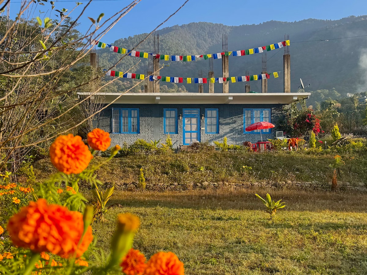 A house in the heart of the Himalayas, away from the hustle of the city. Enjoy a serene view of the valley surrounded by plum, apple, persimmon and other trees. A peaceful location which is perfect for a relaxing vacation or work-ation. Wake up to an amazing view of the snow capped mountains, enjoy a relaxing day reading a book in the balcony, or explore the many nearby sites and adventure activities; This location offers something for everyone.