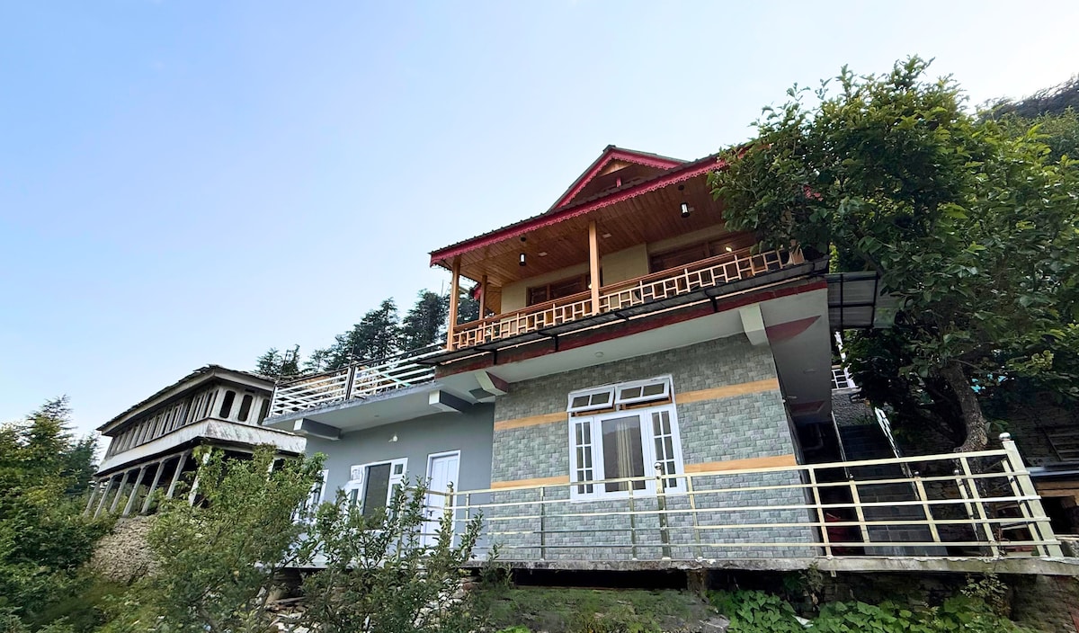 Welcome to our fairytale 'Evara' – meaning 'gift of God.' Nestled in the tranquil village of Naggar. Evara is a beautifully crafted wooden duplex cottage offering peace, comfort, and stunning mountain views. Surrounded by lush apple orchards and nature's quiet charm. This serene getaway features balconies on three sides, allowing you to soak in breathtaking vistas from sunrise to sunset. Warm & cozy interiors, a full kitchen, and a luxurious Jacuzzi to unwind after a day of exploring.