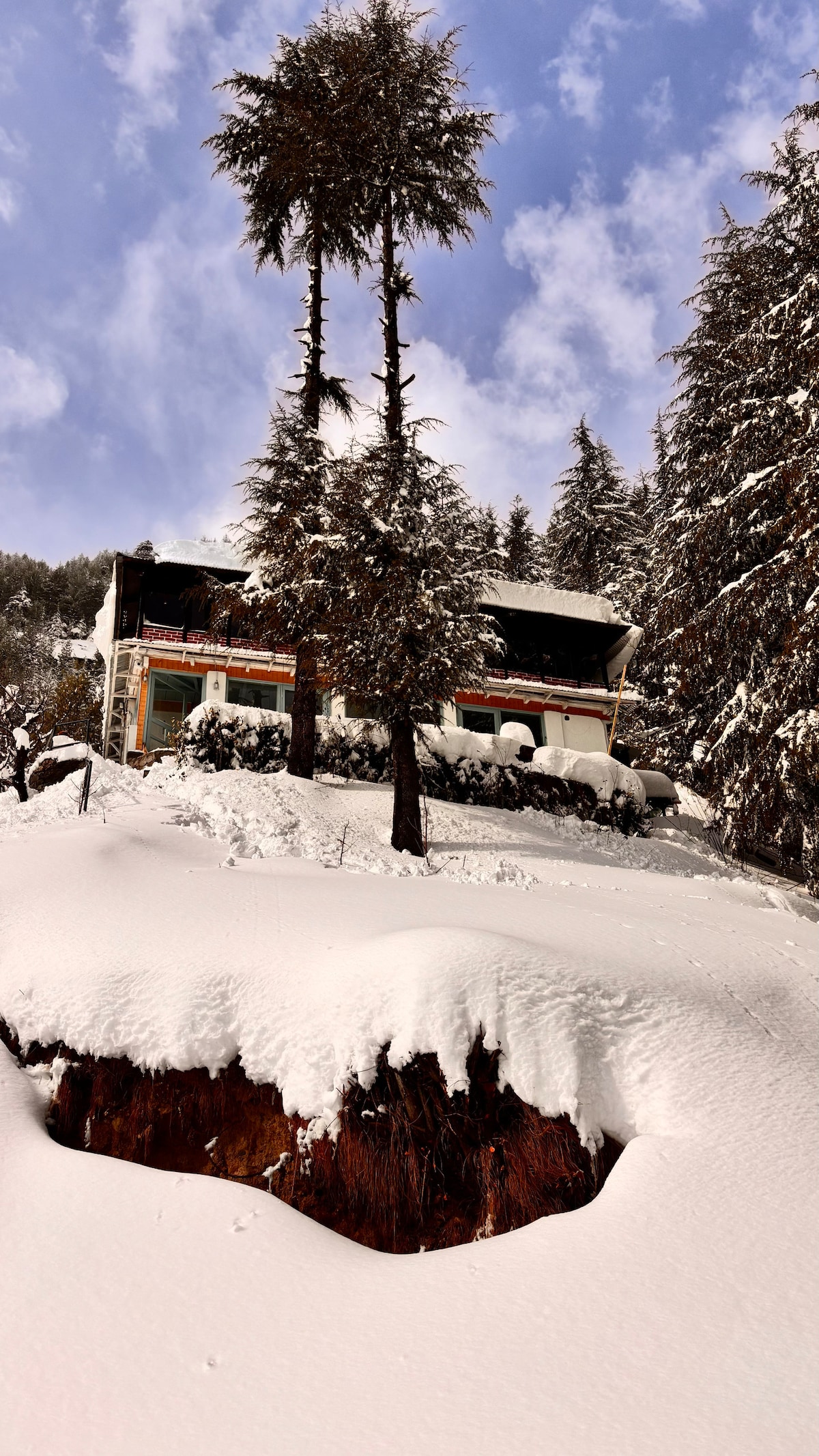 Discover your hideout in the hills — an offbeat escape with a rustic hut and serene views. Perfect for those who travel to disconnect. About place :- Relax with your family/friends at this peaceful place to stay. The cabin is made with Himalayan stone ,Himalayan mud and Himalayan wood. Located in the middle of Apple Garden. Things you can do near by :- Forest walk & Tracking. Explore nearby hidden gems like Sarpas Trek, Grahan Village trek.