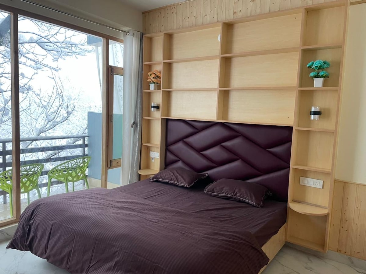 Super cozy Duplex Suite WITH WINDOWS for mountain view. One bedroom on lower level with one washroom and a wooden stairs to upper level bedroom. it has a sofa set on upper level where 4-5 guest can sit and enjoy food. ROOM INCLUSIONS : -Comp Mineral water on arrival -Free WI-FI , parking Free Breakfast (Morning 8.30 till 10.30am)served at dining area only (No Room Service) -Heater at additional 300/- rs charge Room is on 3rd Floor Note *No provision of lift*