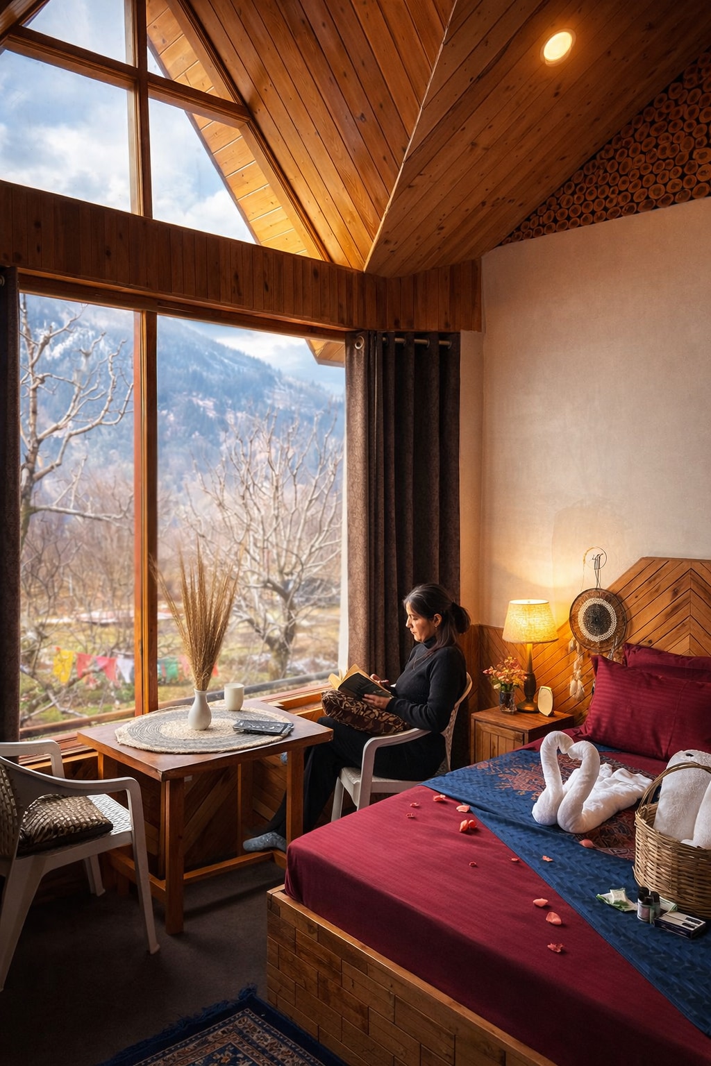 Hello traveller! Welcome to Our Cozy Retreat: "NinYanWays Boutique Stay" in Manali. Nestled in a serene corner of Old Manali, just 300 meters from the Club House on Shnag Road, our boutique stay is a little haven I’ve poured my heart into creating for you. Imagine waking up to the gentle sound of a nearby river, with the majestic Himalayan mountains and lush pine forests as your backdrop, and you amongst apple orchids—it’s the kind of peaceful escape that feels like a warm hug from nature.