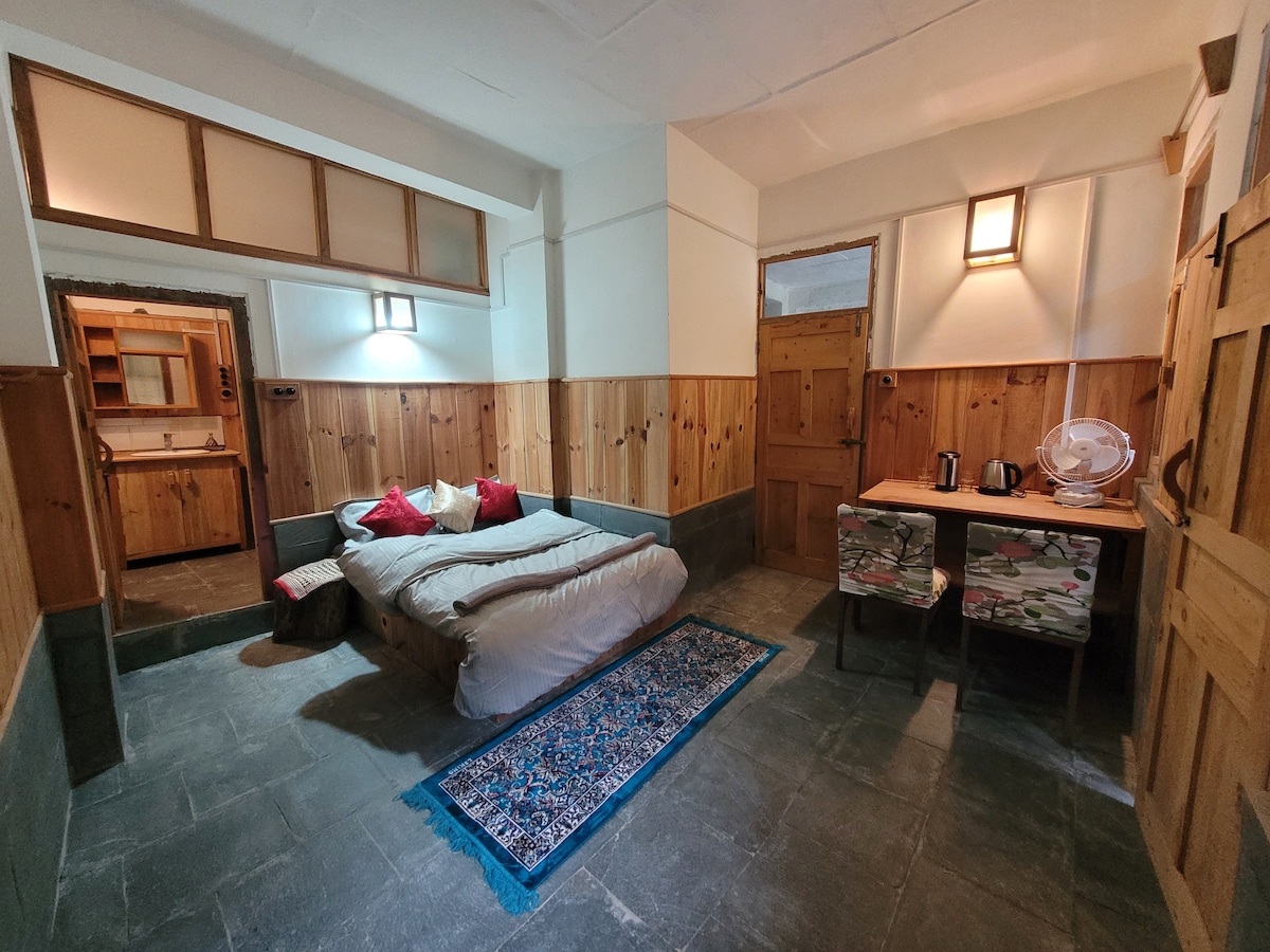 This Compact Riverside Room, set in Shanag just 4.5 km from Manali Mall Road, offers a cozy retreat with an attached washroom and stunning mountain and river views. The property features a unique café serving multi-cuisine dishes, a library, pool table, foosball, and board games. Evenings come alive with bonfires and drinks under the stars. Three adorable Siberian huskies add charm with their playful cuddles. Perfect for nature lovers, this serene escape blends comfort, beauty, and relaxation.