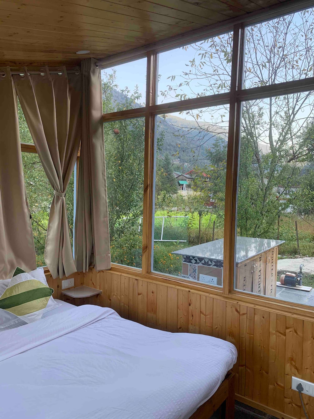 Hi! The cabin is a pvt. unit on our land, made naturally w exquisite sunset, snow clad peaks & Beas river views. Naggar is the widest part of the Kullu valley with breathtaking views & we are centrally located here. The Naggar Castle, Tripura Sundari & Krishna temple are nearby. Manali & Vashisht are 20 km. We also serve homely vegetarian meals & snacks at our home. We aren't a commercial hospitality unit, but an alt space for artists & anyone who is looking for a different travel experience.