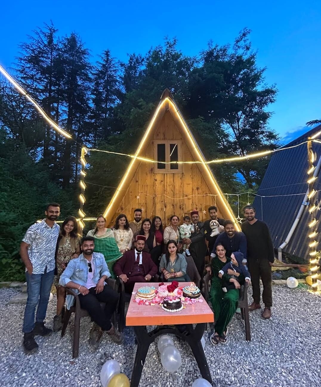Escape to our charming A-Frame Cabin nestled in nature, just a 10-minute trek from the road. This offbeat stay features three cozy units – two A-frame bedrooms and a third unit with a warm living room, attic, washroom, and a fully-equipped kitchenette. Surrounded by serene views and pine trees, the cabin also offers a spacious outdoor area perfect for relaxing under the stars. Ideal for nature lovers and peace seekers looking for a unique hillside getaway.