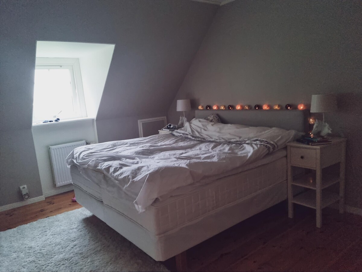 Ca 100 kvm eget boende i hus, tillgång till hela övervåning med 3 sovrum och 3 dubbelsängar. Eget badrum och dusch. Eget TV rum och ingång. Ej möjligheter att laga eller förvara mat. Obs! Öppen trappuppgång mellan ner och övervåning. Vi som vanligtvis bor i huset kommer under denna perioden bo på nedervåningen. Katt och hund finns i huset.