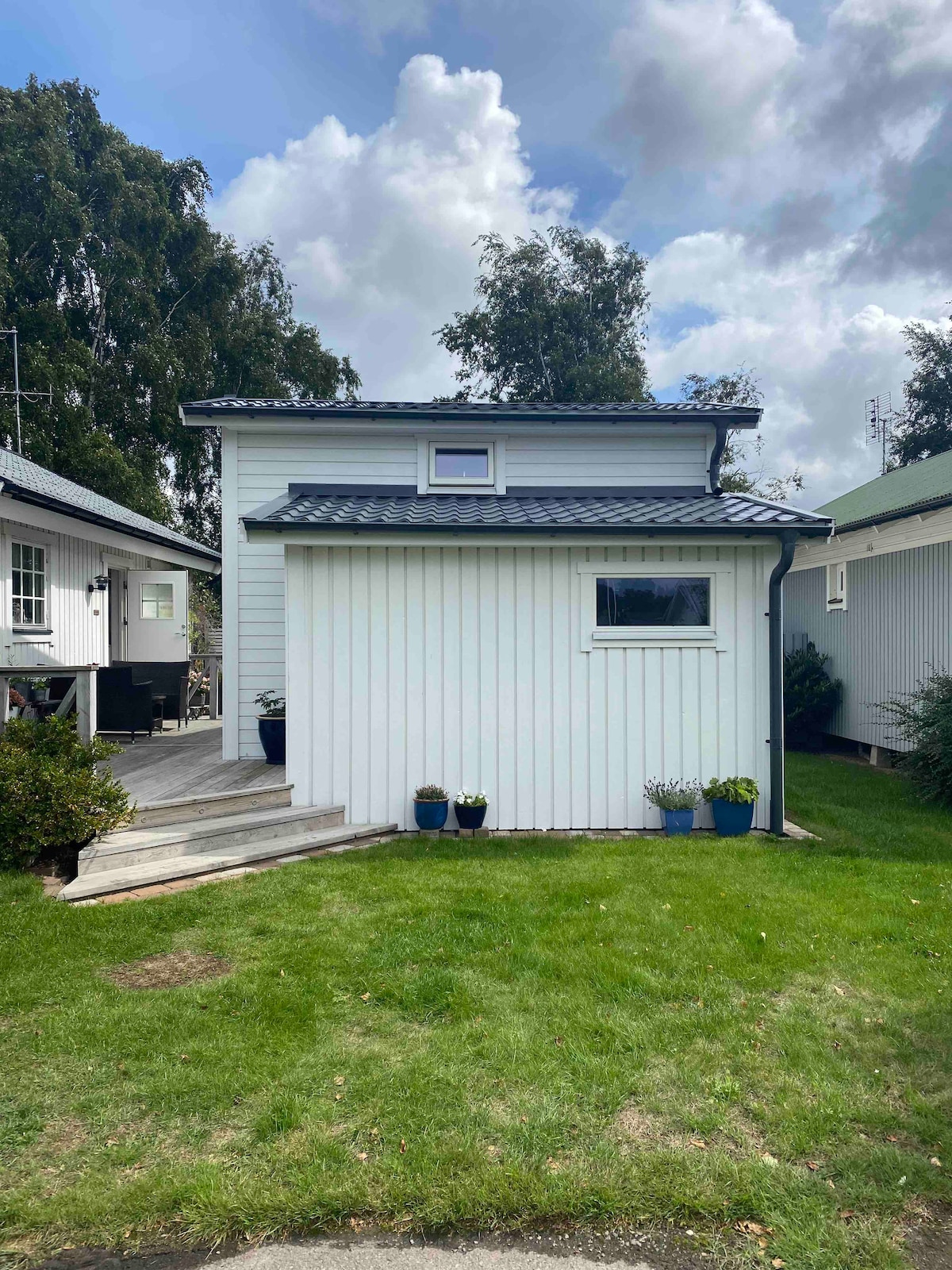 Nybyggd stuga med havsutsikt nära Steninge Strand